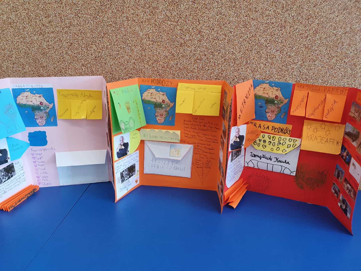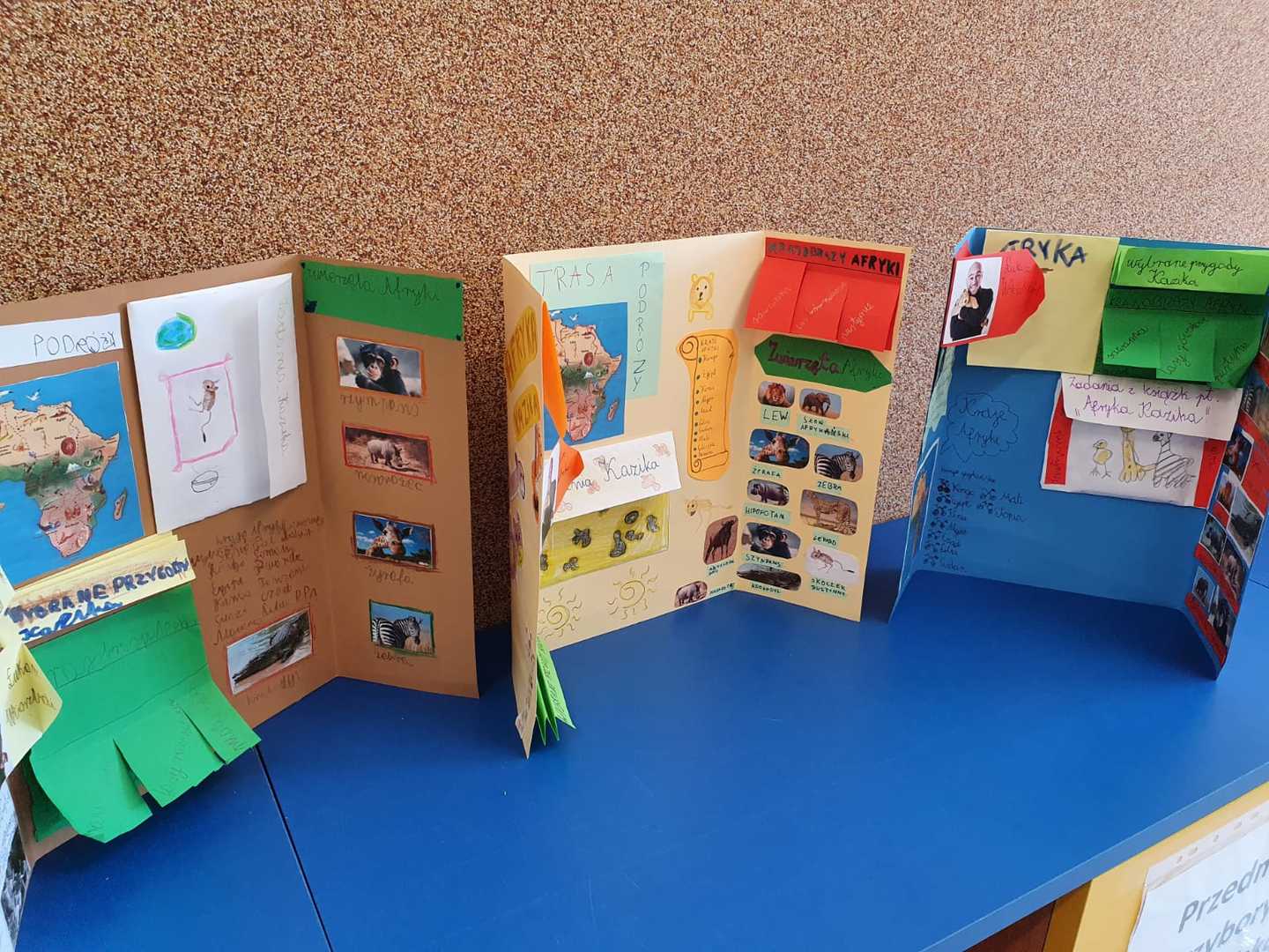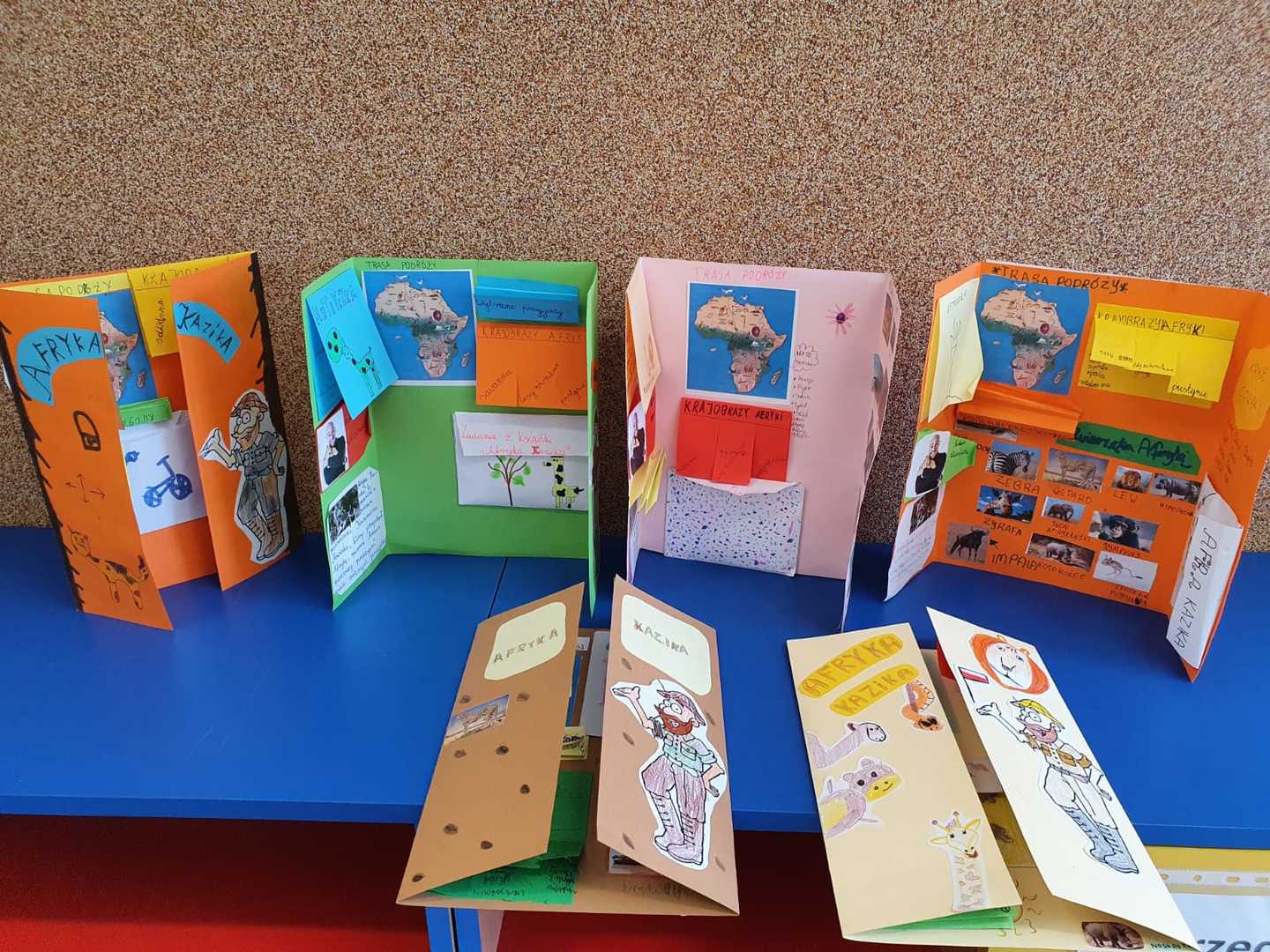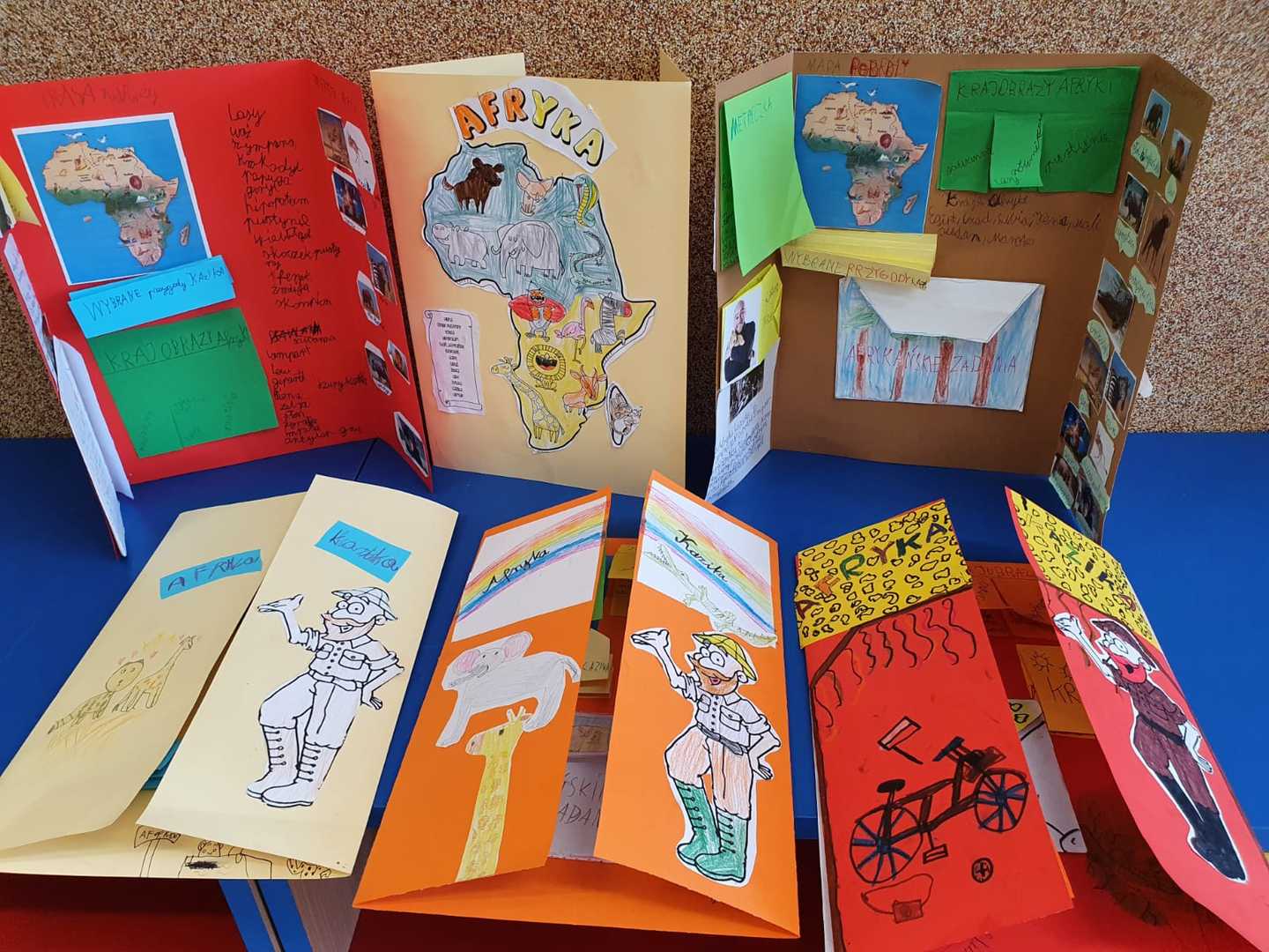 Lapbooki wykonane w trakcie omawiania lektury "Afryka Kazika" przez klasę 2a