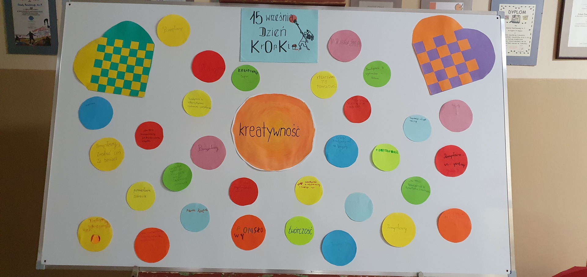 15 września młodsze klasy świętowały Międzynarodowy Dzień Kropki. Po obejrzeniu historii małej dziewczynki Vashti, rozmawialiśmy o kreatywności i naszych uzdolnieniach. Czekało na nas również wiele "kropkowych" zadań, m.in. kredowe kropki na boisku, prace plastyczne, czy łamigłówki. To był bardzo twórczy dzień.
