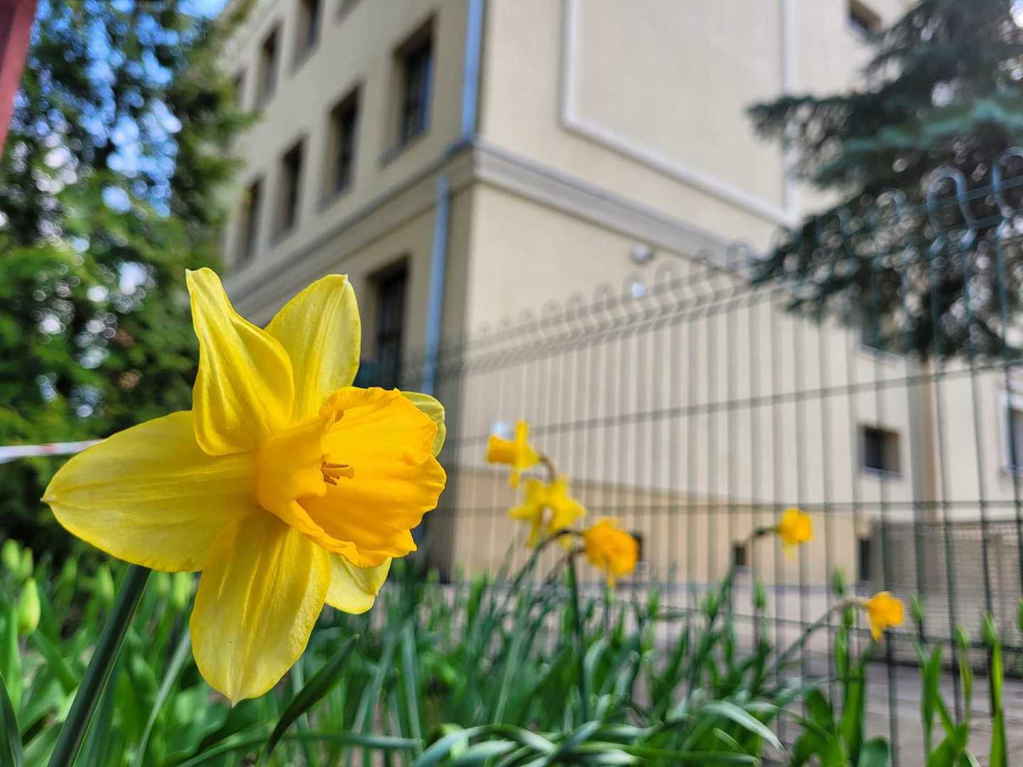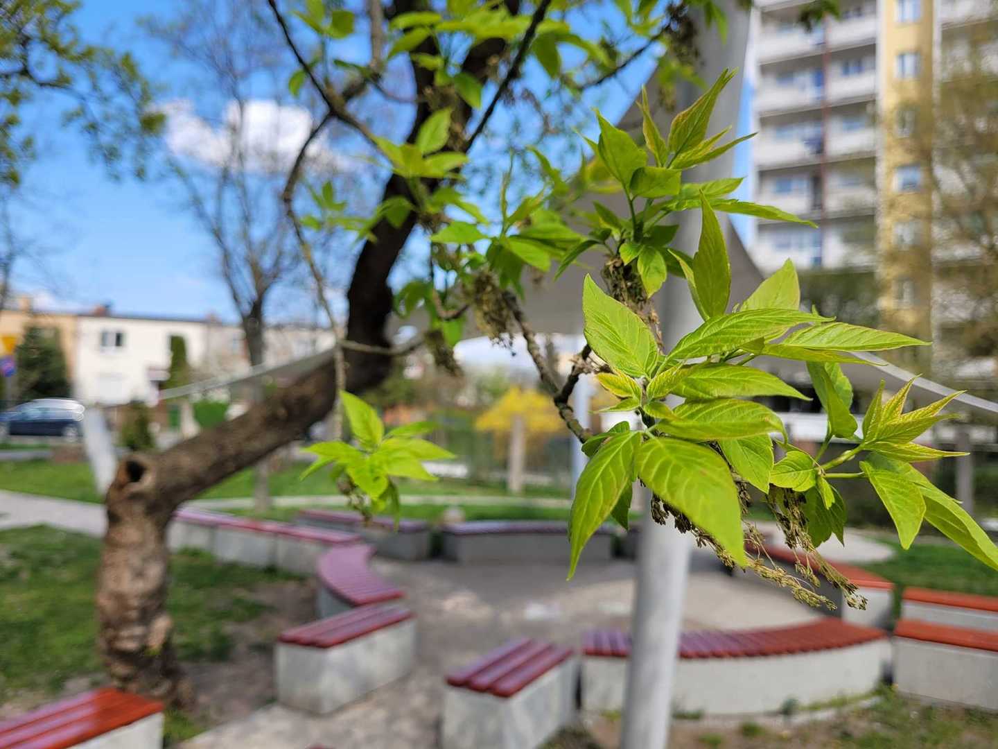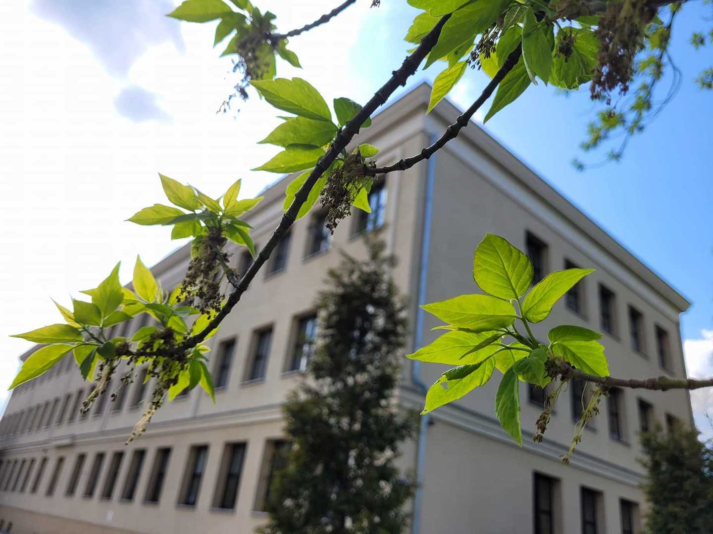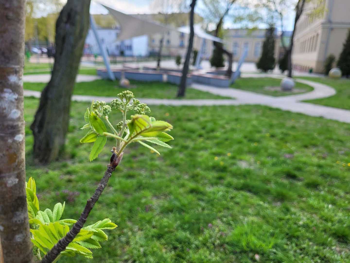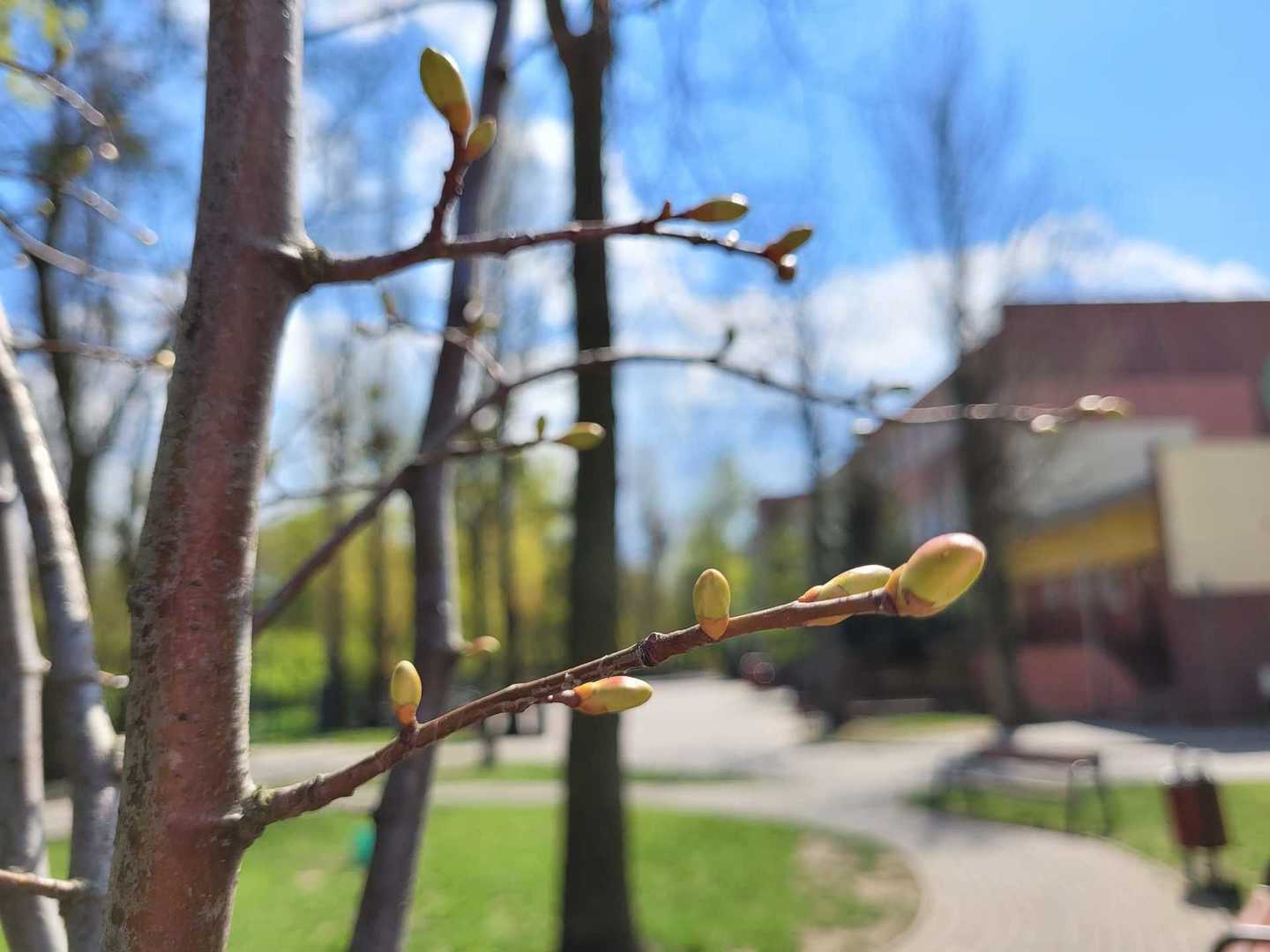 Wiosenne spojrzenie na naszą szkołę, robi się zielono, wyłażą pączusie, kwitnie młoda lipa, zalążki mają jarzębiny. Jest coraz piękniej!