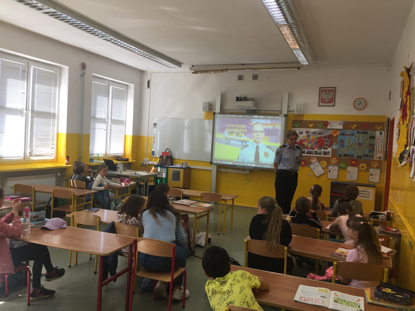 Naszymi gośćmi byli przedstawiciele Straży Miejskiej w Toruniu, którzy przeprowadzili zajęcia profilaktyczne pt. "Uwaga Obcy". Miały one uświadomić uczniom klas 1-3 na jakie zagrożenia ze strony osób obcych i nieznajomych mogą być narażone. Strażnicy ds. profilaktyki wytłumaczyli jak prawidłowo zachować się podczas spotkania z nieznajomym, jak uniknąć groźnych sytuacji i kłopotów. Przedstawili także podstawowe zasady bezpieczeństwa i numery alarmowe. Serdecznie dziękujemy za to ważne i wartościowe spotkanie. 🌷