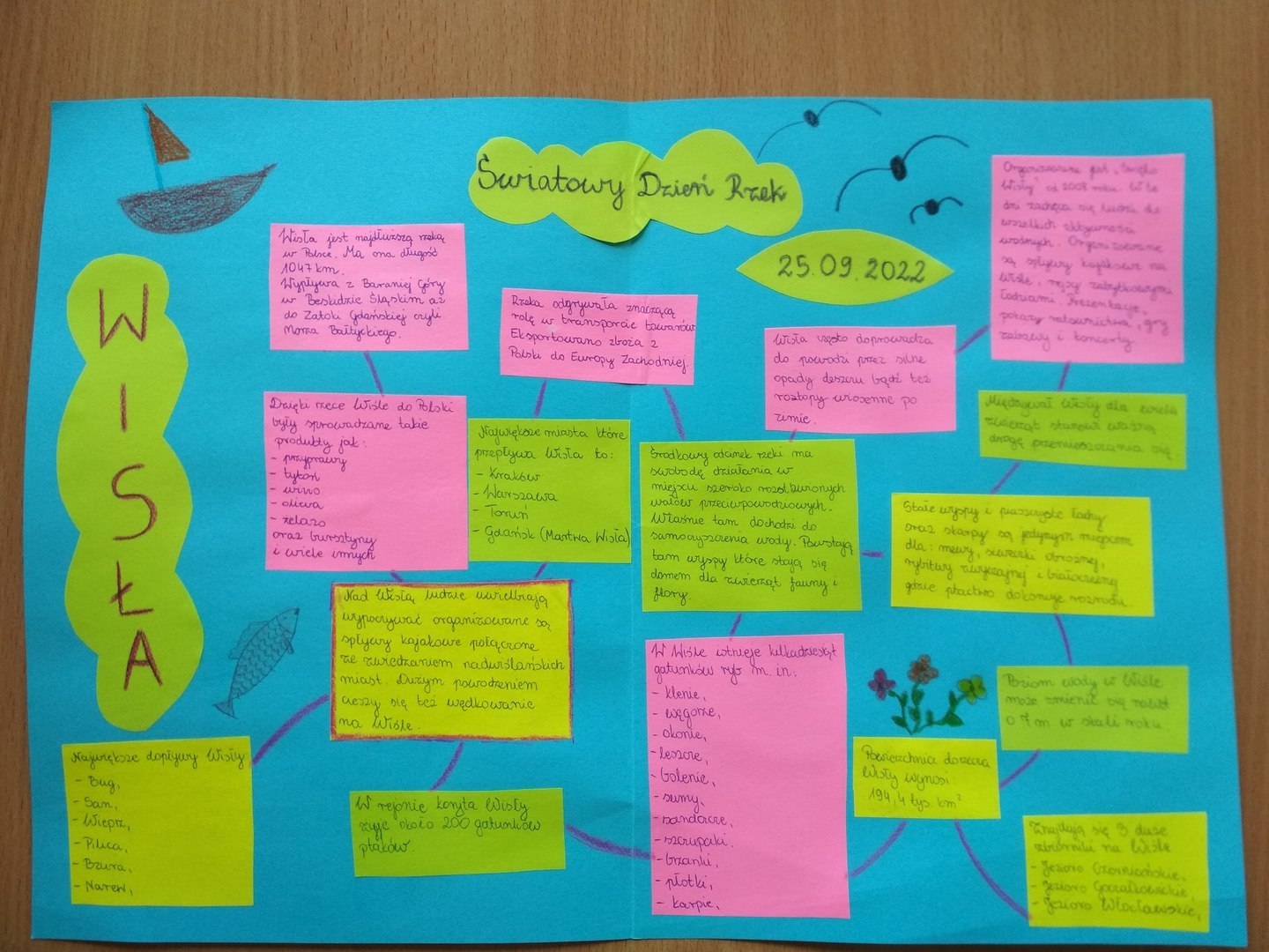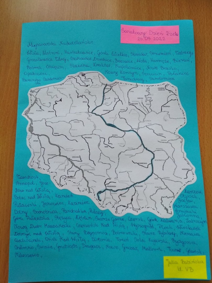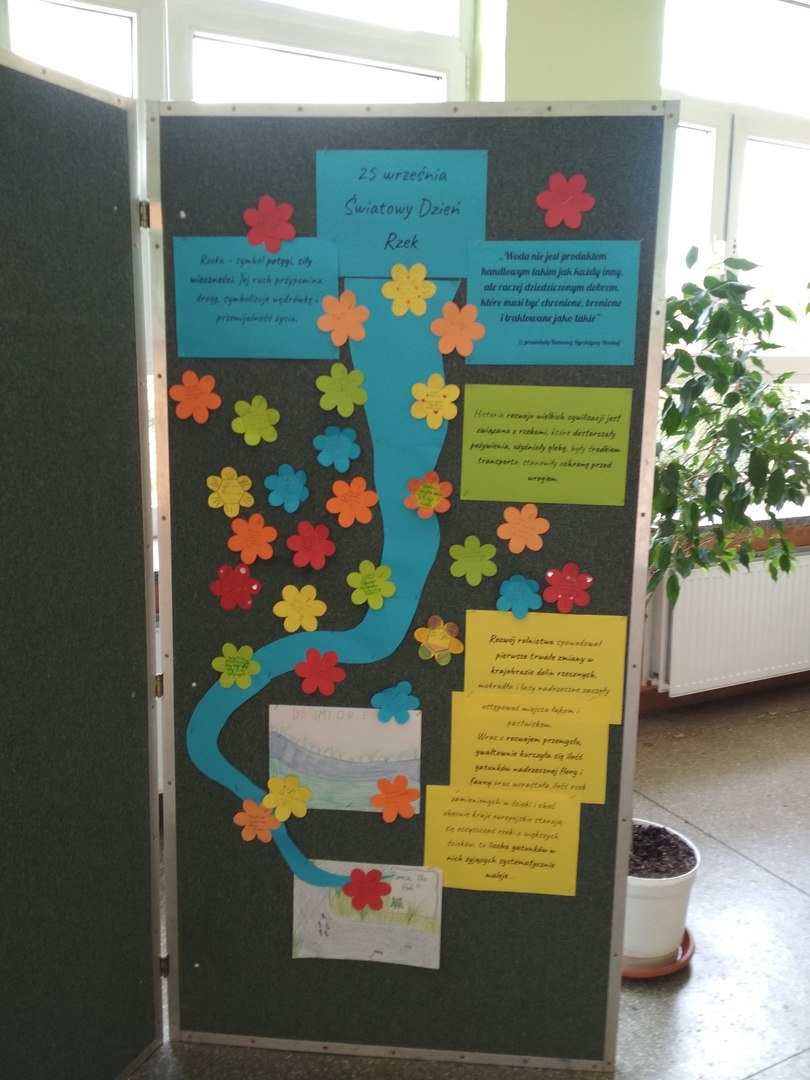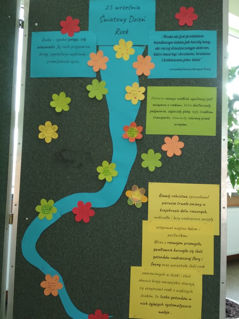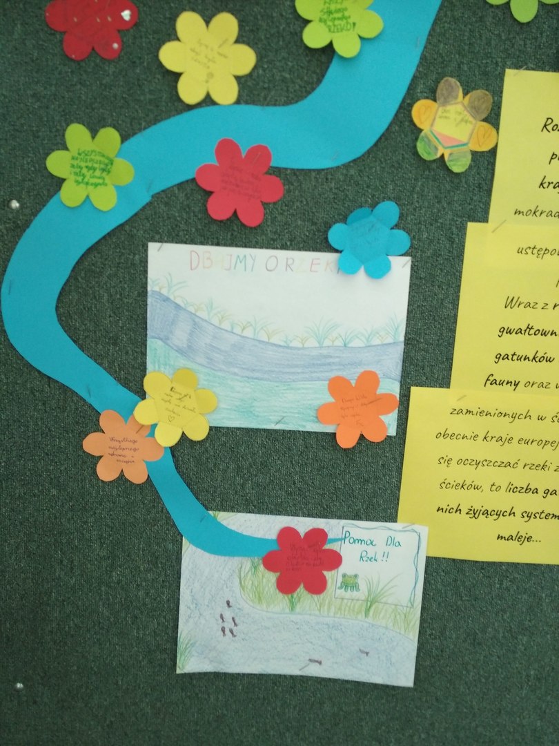 W minionym tygodniu obchodziliśmy w naszej szkole Światowy Dzień Rzek. Uczniowie wraz z nauczycielami mieli okazję brać udział w różnych aktywnościach i zadaniach poruszających temat “Rzeka”. Rozmawialiśmy o znaczeniu rzek na naszej planecie oraz o jej mieszkańcach - faunie i florze dolin rzecznych. Uczniowie rozwiązywali zagadki, układali puzzle, tworzyli modele ulubionych rzecznych zwierząt. Była również praca z mapą i wyszukiwanie rzek w celu stworzenia “Alfabetu rzecznego”. Powstawały piękne rzeczne krajobrazy. Na zajęciach z edukacji polonistycznej Uczniowie analizowali wiersz J. Brzechwy “Żaba”. Uczniowie klas 4-8 składali życzenia rzekom z okazji ich święta wypełniając karneciki urodzinowe. Chętni uczniowie mogli brać udział w konkursie szkolnym “Oblicza polskich rzek”, uczestnicy przygotowali piękne lapooki. Wyniki konkursu zostaną ogłoszone w tym tygodniu. Zapraszamy do zapoznania się z fotorelacją szkolnych obchodów Światowego Dnia Rzek.