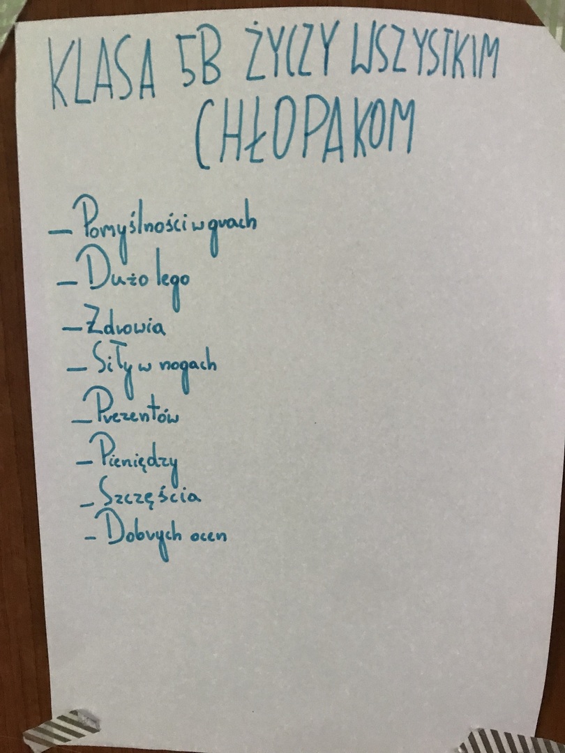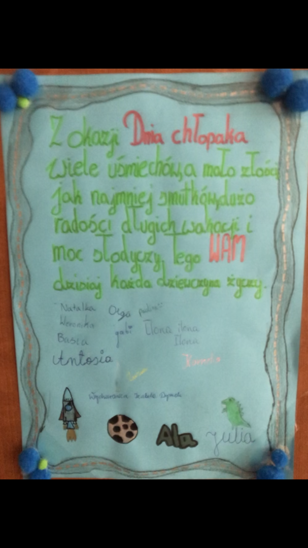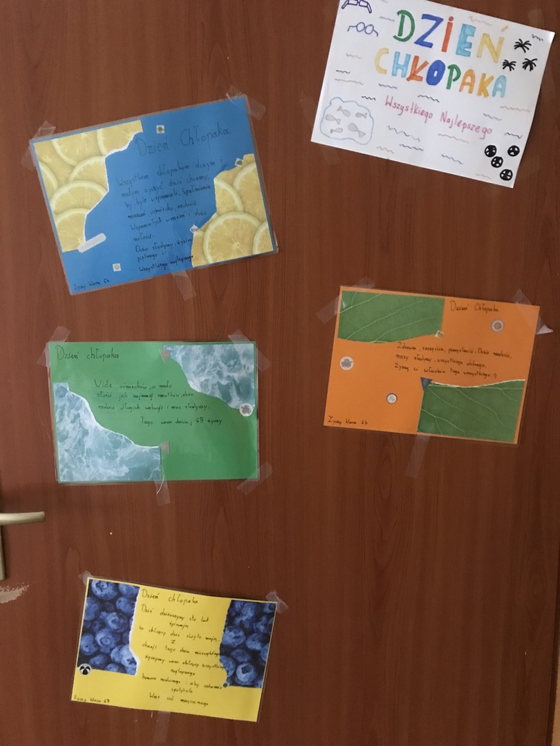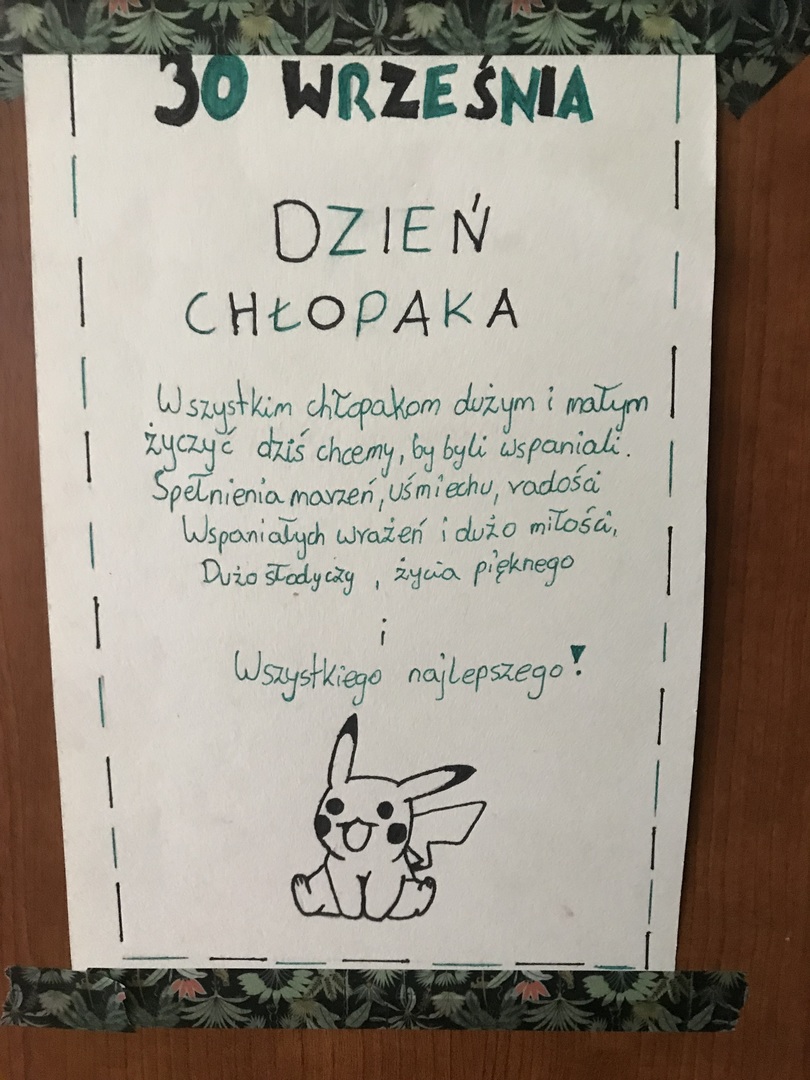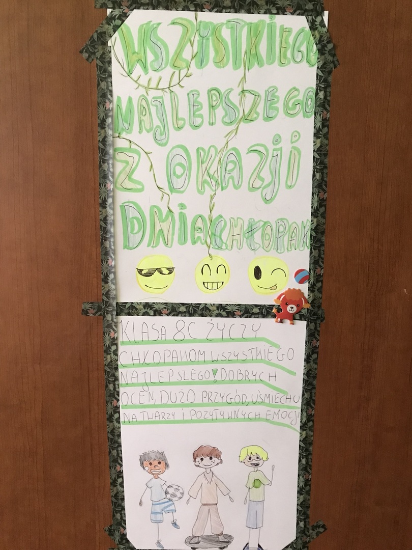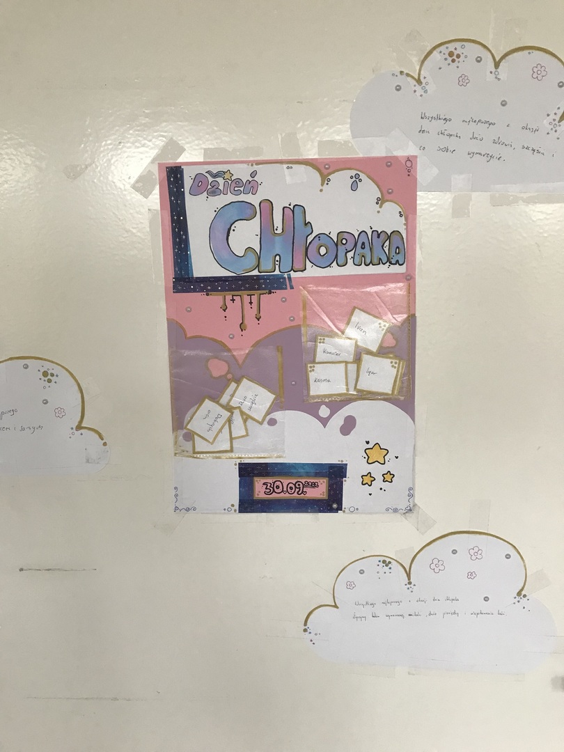 30 września obchodziliśmy Dzień Chłopca. Z tej okazji na drzwiach poszczególnych klas zawisły plakaty z życzeniami. Nie mogło zabraknąć drobnych upominków od dziewcząt oraz słodkiego "co nieco". Samorząd Uczniowski dziękuje za zaangażowanie.