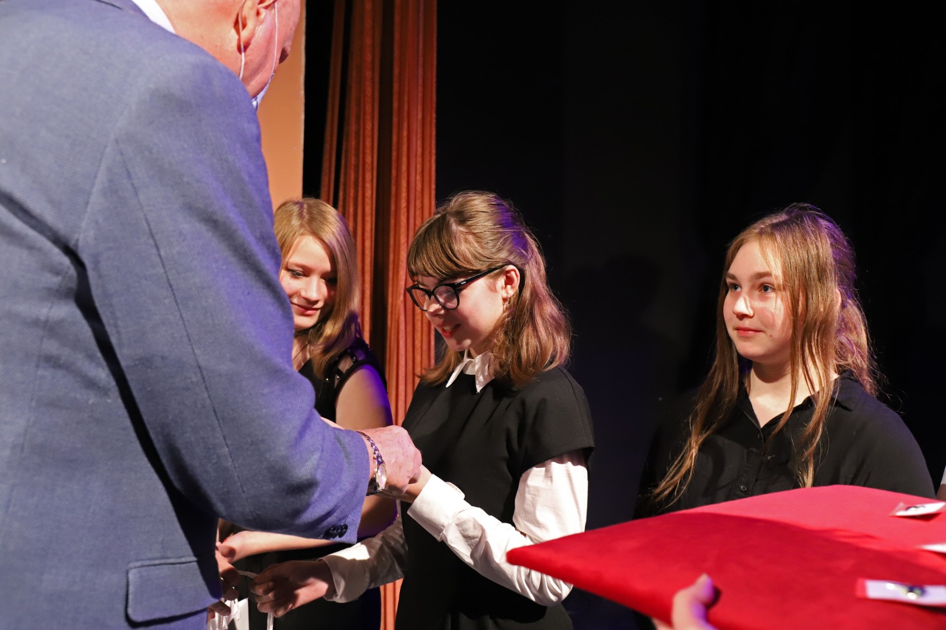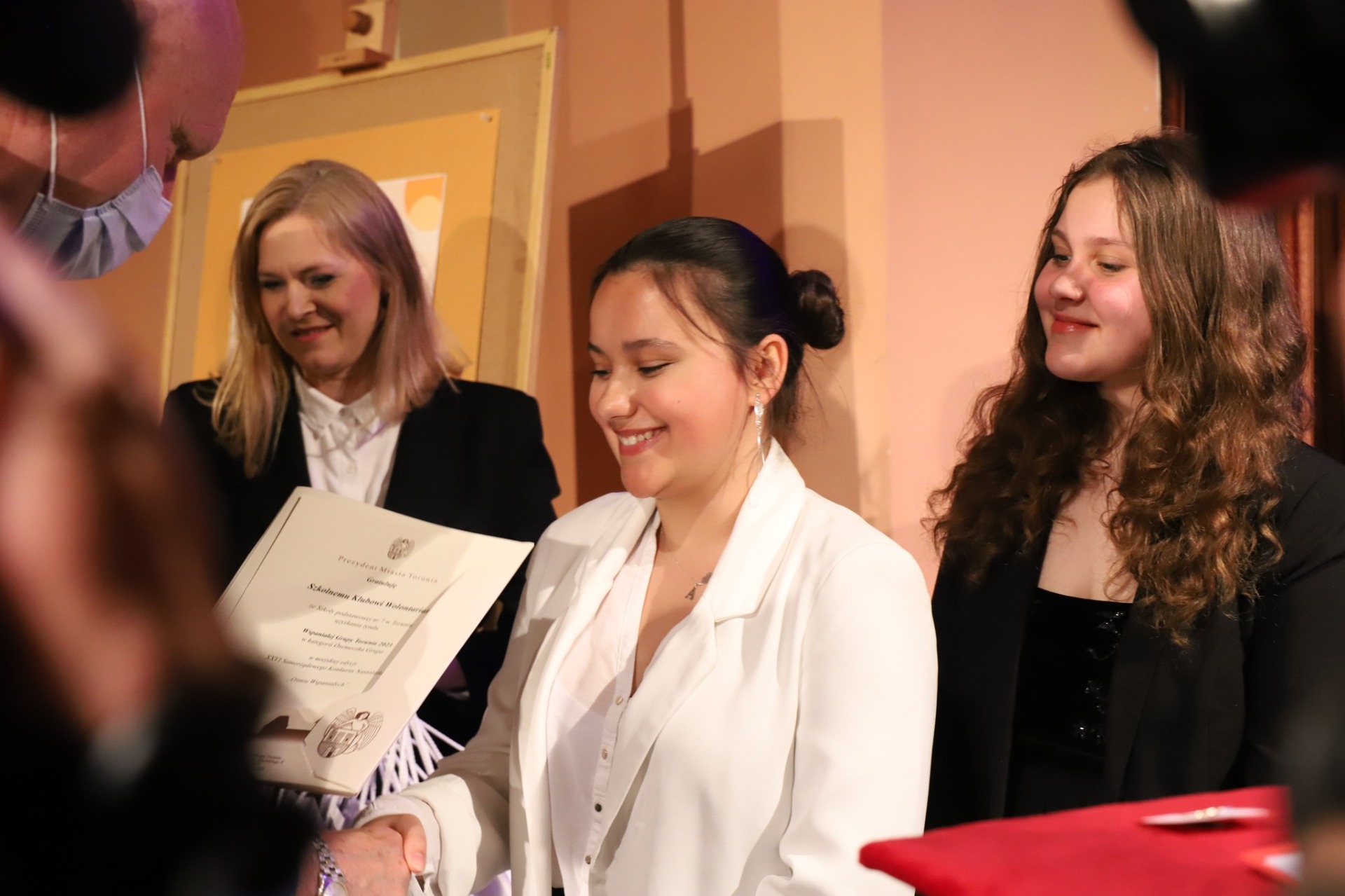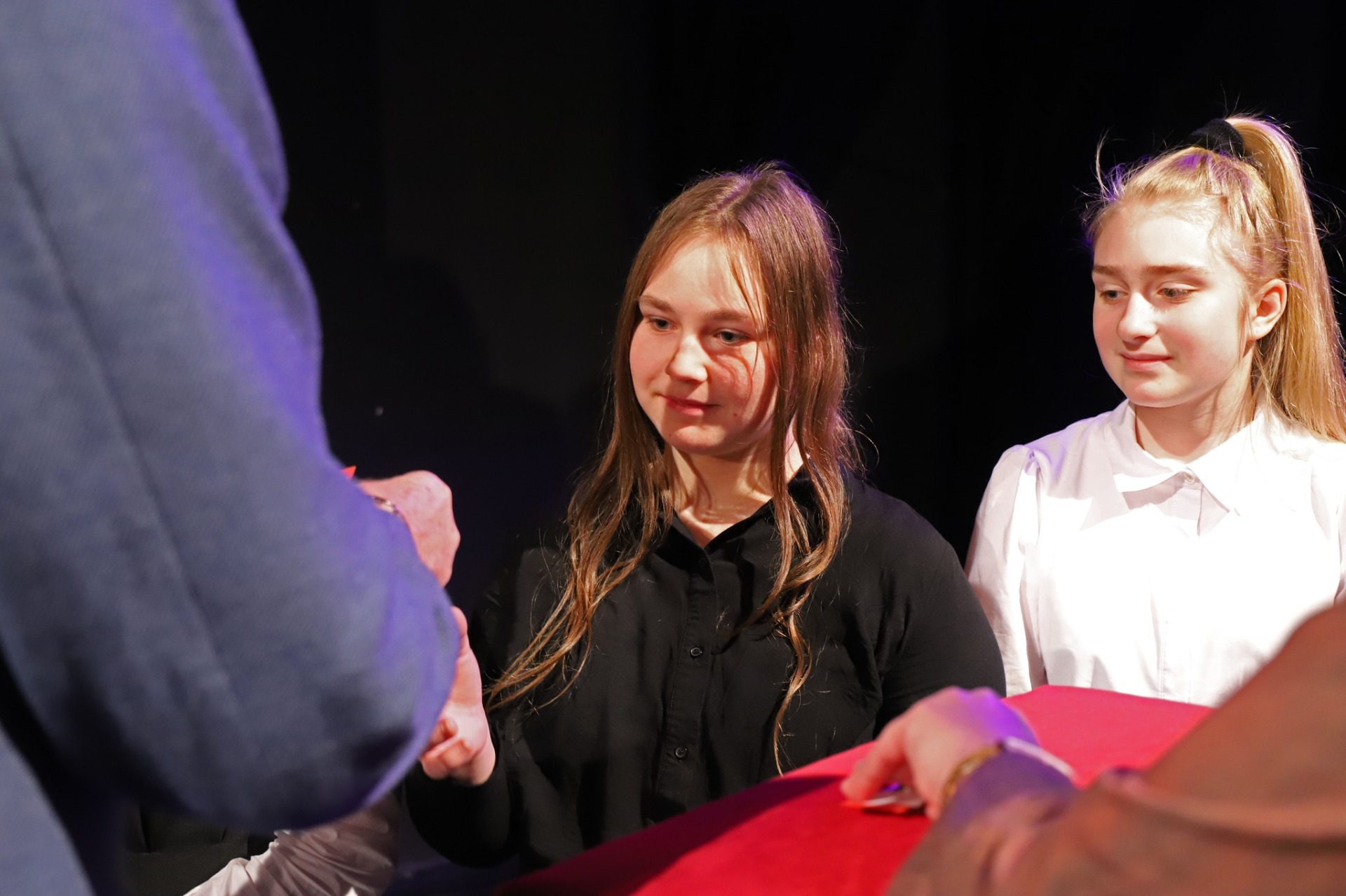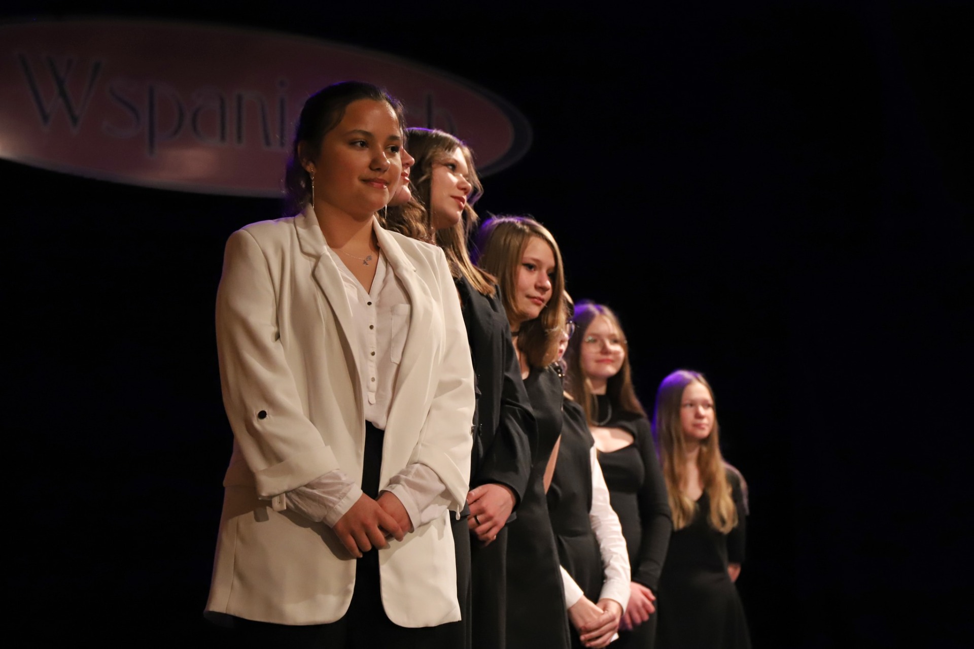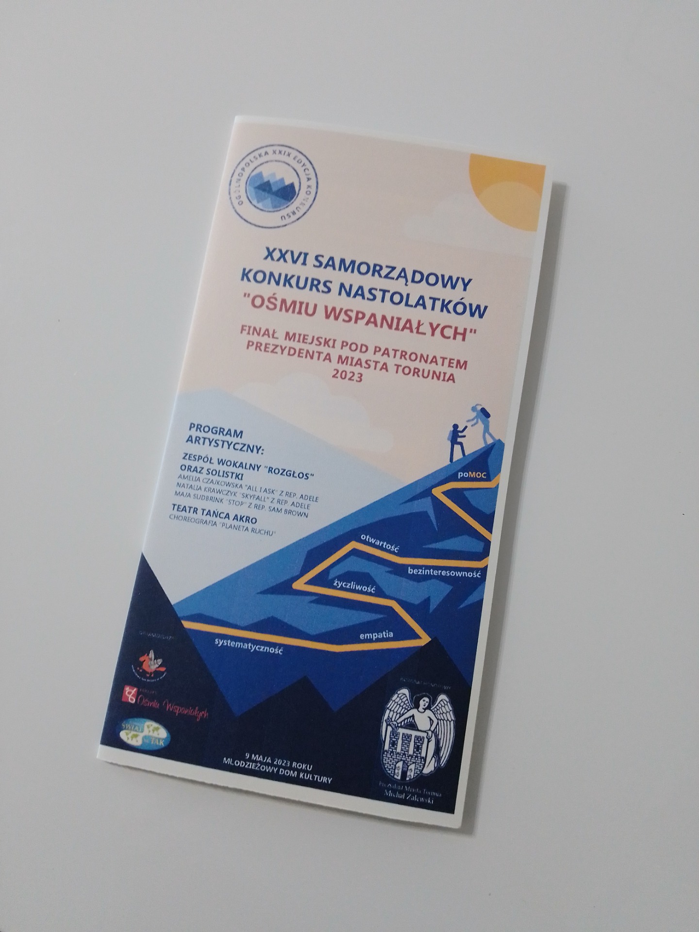 9 maja 2023 r. w Młodzieżowym Domu Kultury w Toruniu odbył się finał XXVI edycji Samorządowego Konkursu 8 Wspaniałych. Podczas uroczystej gali uczennice naszej szkoły z klasy 8a i 8c - Amelka, Hania, Olga, Nadia, Weronika, Oliwia, Marta, Daria i Aliya odebrały pamiątkowe odznaki i upominki za działalność w Szkolnym Klubie Wolontariatu.