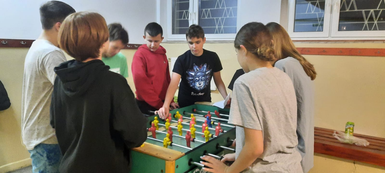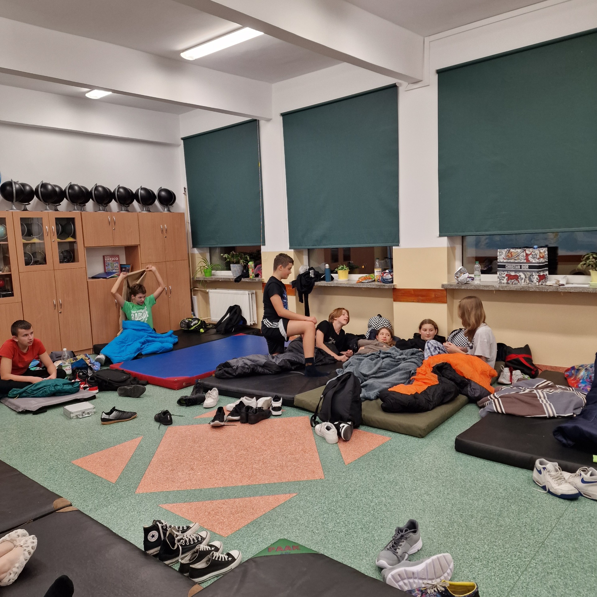 Uczniowie, wraz z opiekunami, spędzali aktywnie czas na zabawach🤾,🤸, 🥅rozmowach🧑🦯, grach, oglądaniu filmu📺 i konsumpcji pysznej pizzy🍕.