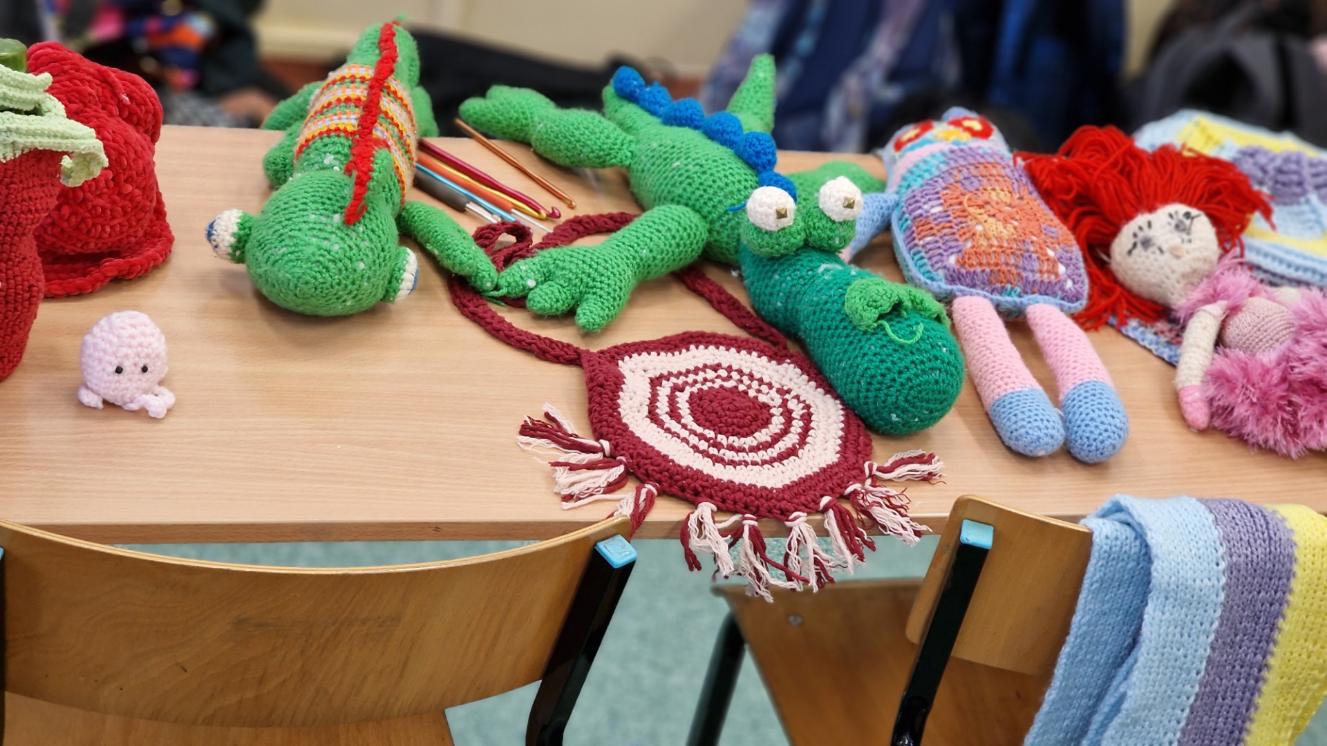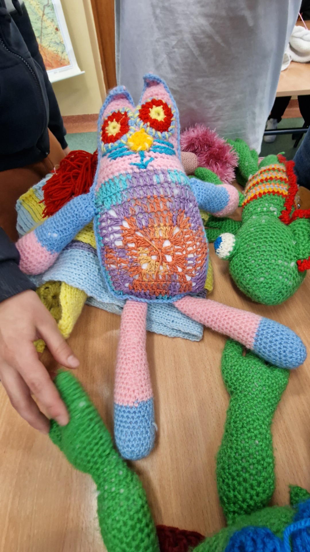 Były wśród nich: maskotki🐛🦎, czapki szaliki 🧣, rękawiczki 🧤, podstawki pod kubki, a nawet nosidełko do bidonu.