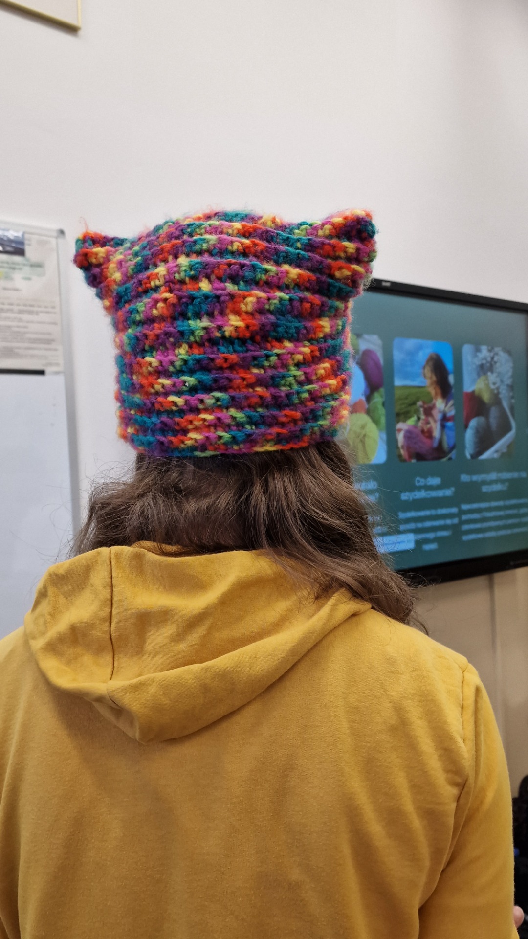 Oprócz prezentacji prac, dziewczyny przygotowały krótki kurs podstaw szydelkowania. Każdy mógł podjąć próbę nauki najprostszych ściegów szydełkowych.