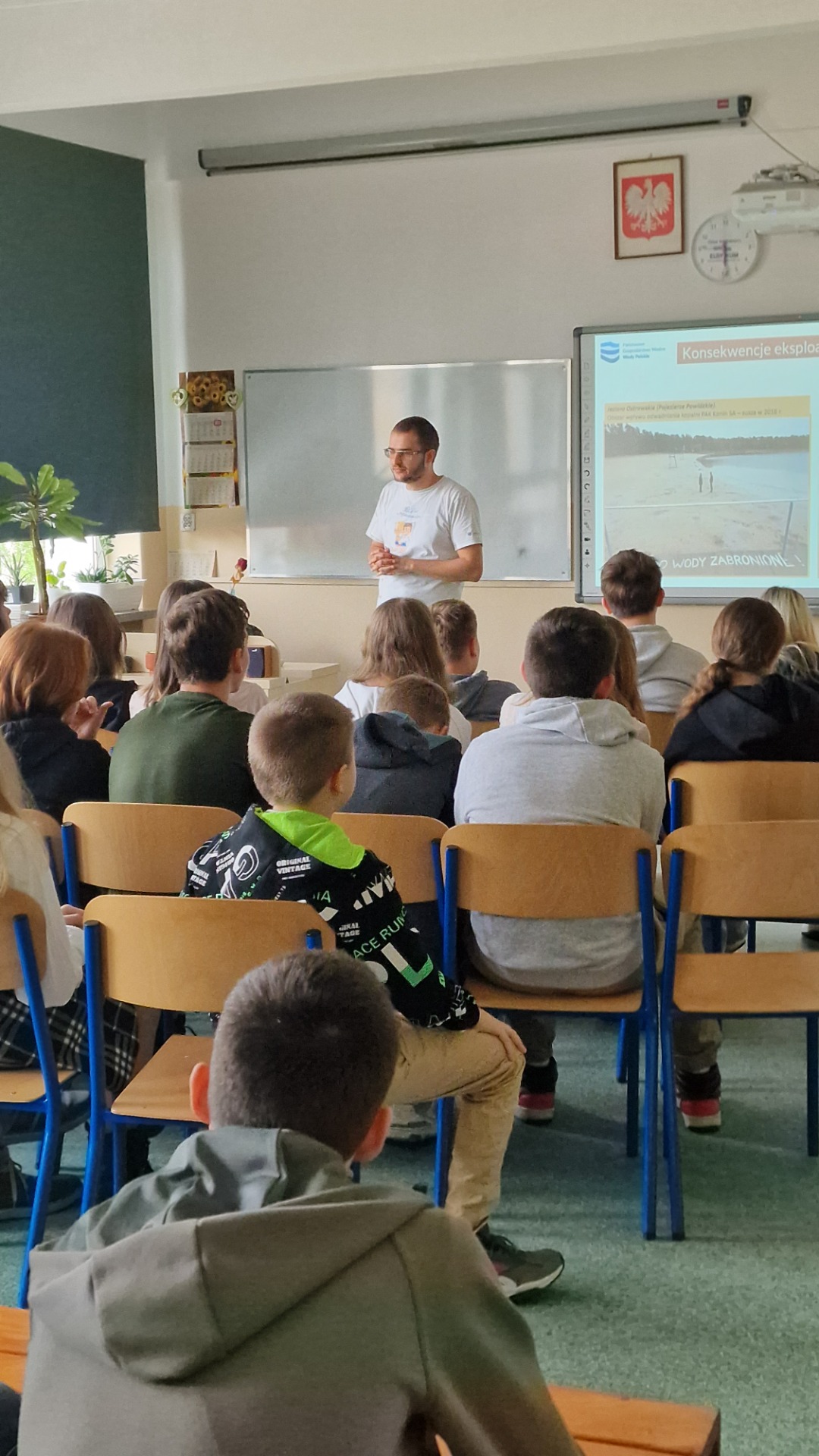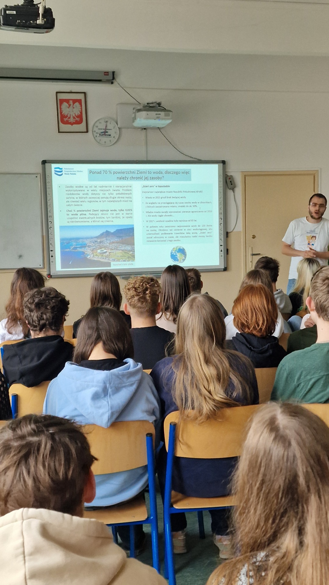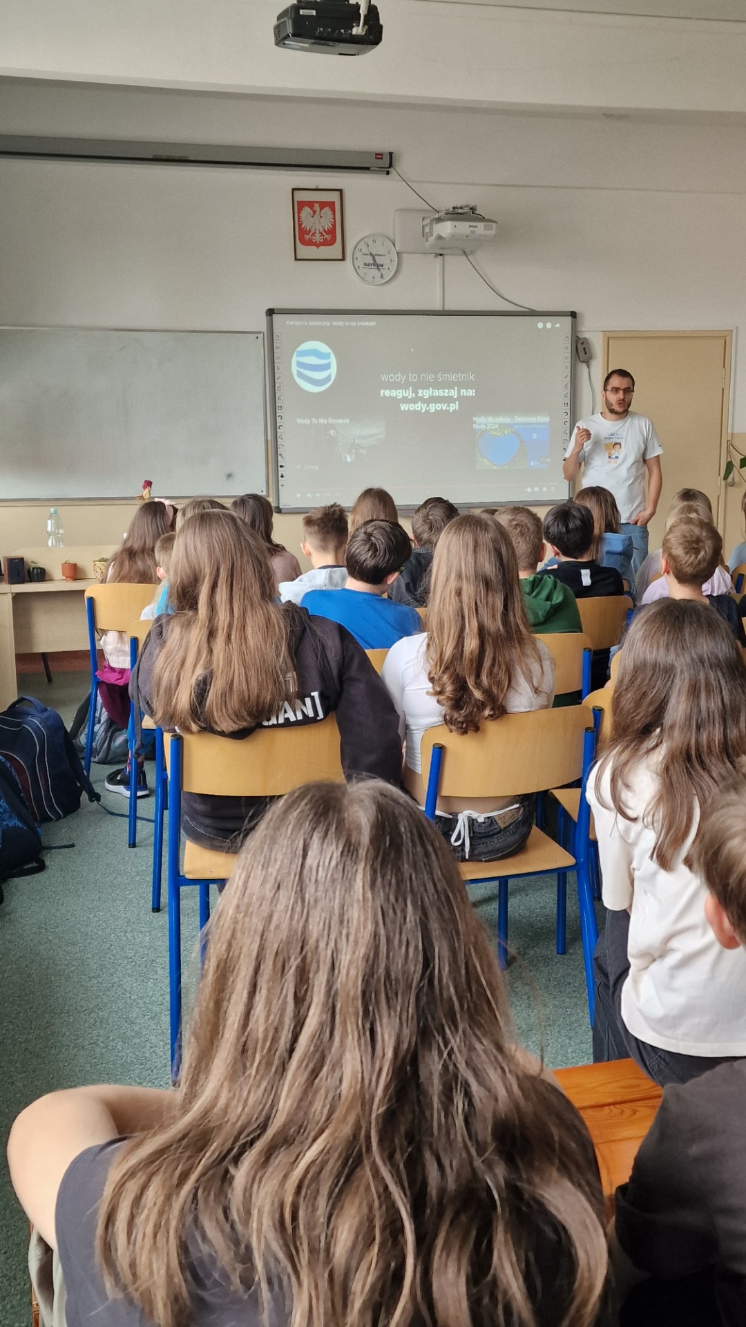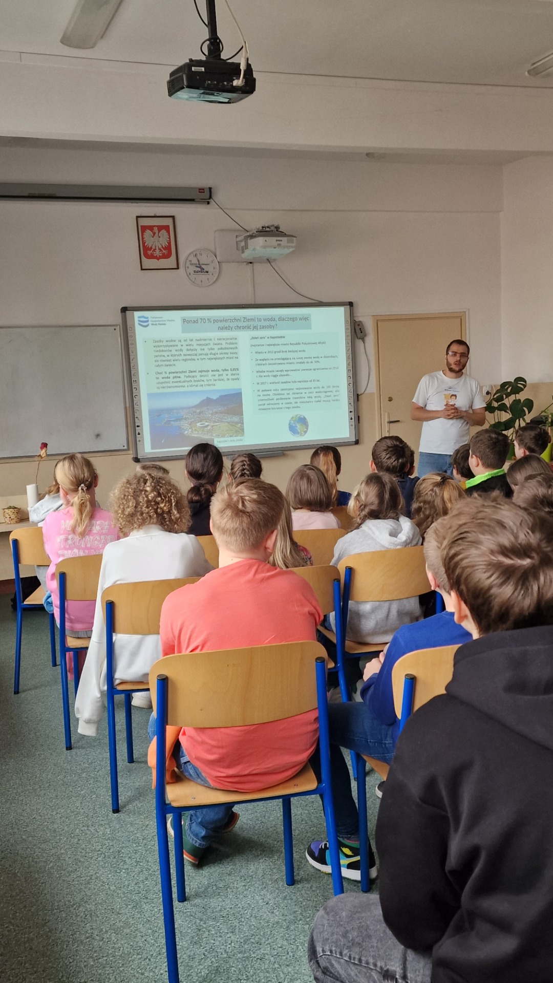 W dniu 8 kwietnia uczniowie ośmiu klas, mieli okazję uczestniczyć w zajęciach poświęconych Edukacji Wodnej. Gościliśmy w naszej szkole przedstawiciela Państwowego Gospodarstwa Wodnego Wody Polskie - pomysłodawcę programu edukacyjnego Aktywni Błękitni - szkoła przyjazna wodzie, w którym nasza szkoła bierze udział już kolejny raz.