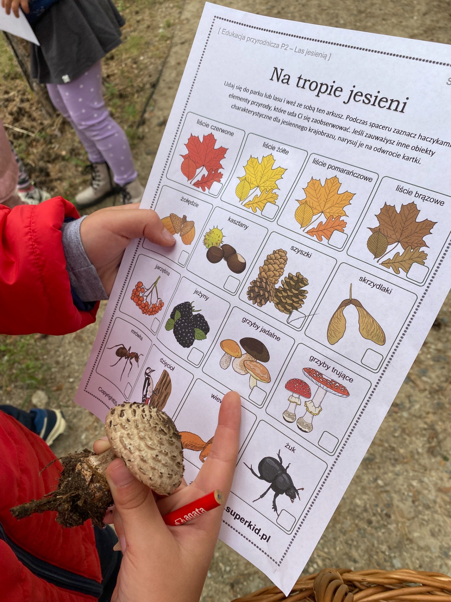 Jak jesień to oczywiście grzyby, okazało się że mamy w klasie wielu miłośników grzybobrania. Dzieciom udało się znaleźć dorodne jadalne okazy oraz wiele innych skarbów jesieni.