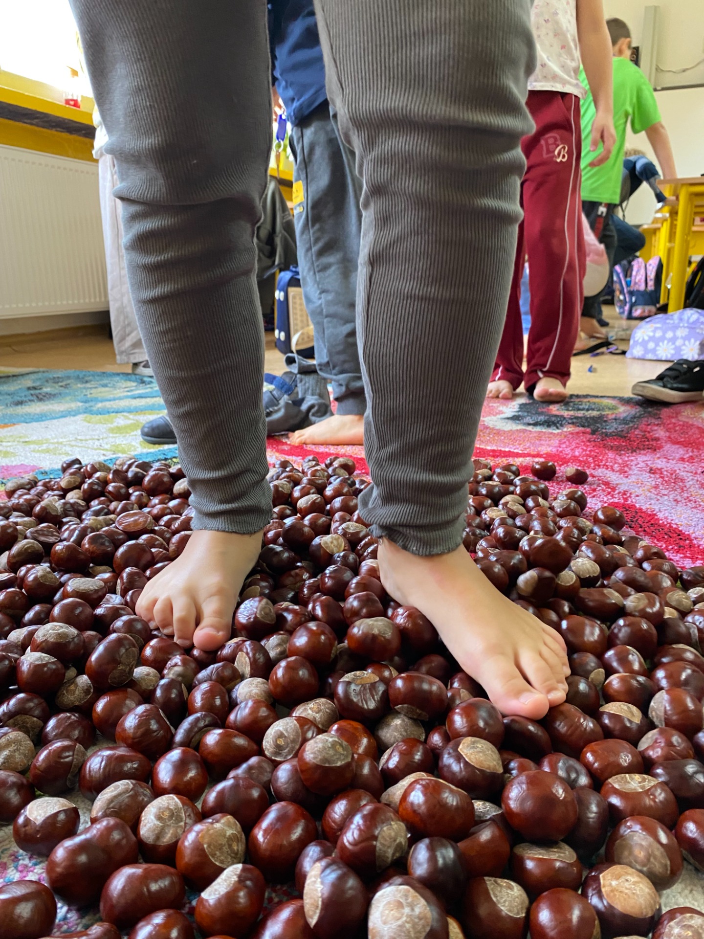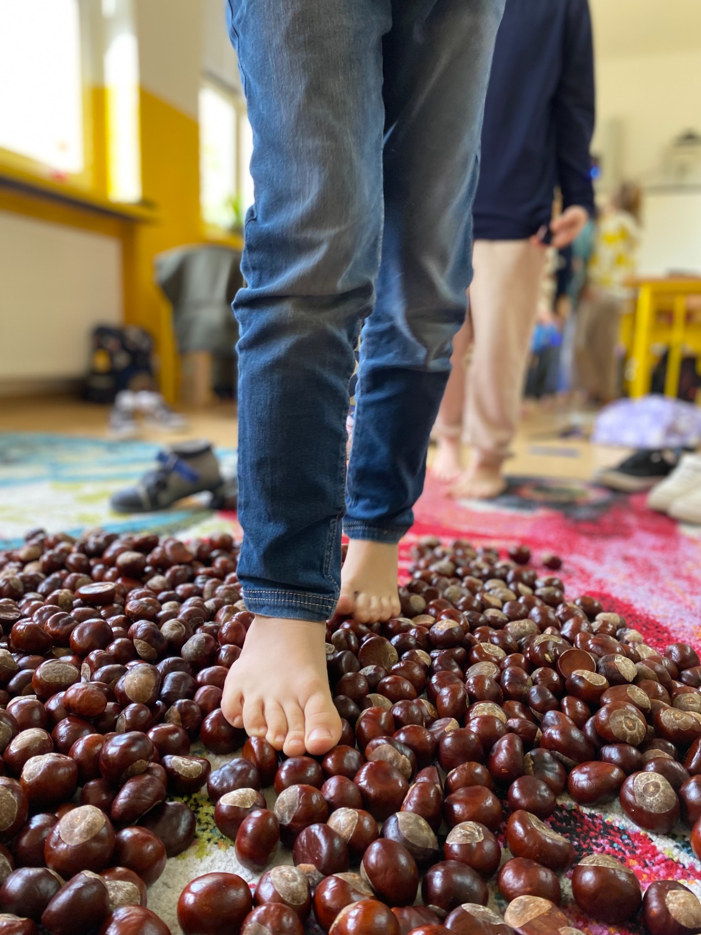 🌰chodziliśmy bosymi stopami po kasztanach, doskonałe bodźce sensoryczne wzmacniające mięśnie stóp 👣 i równowagę