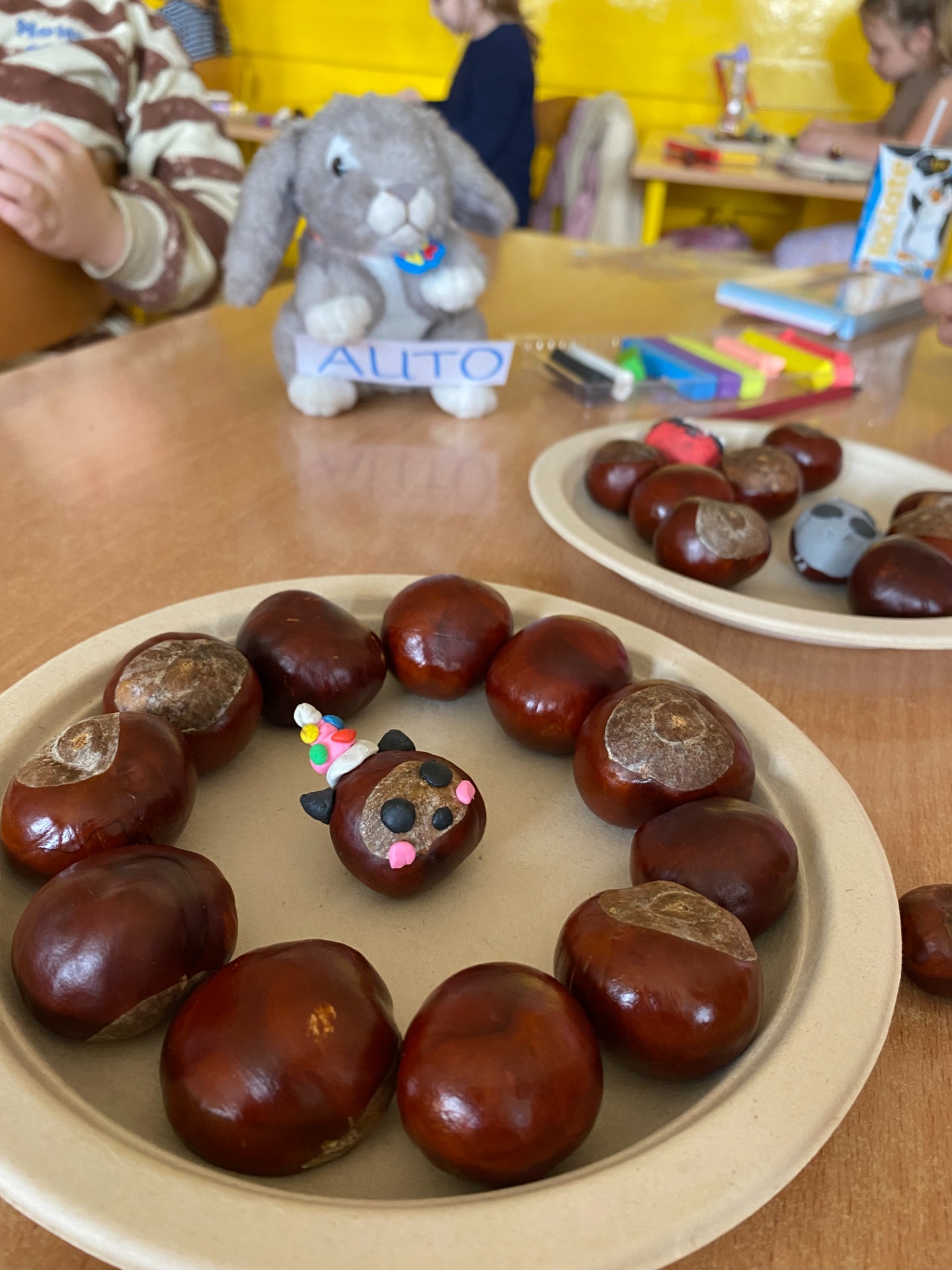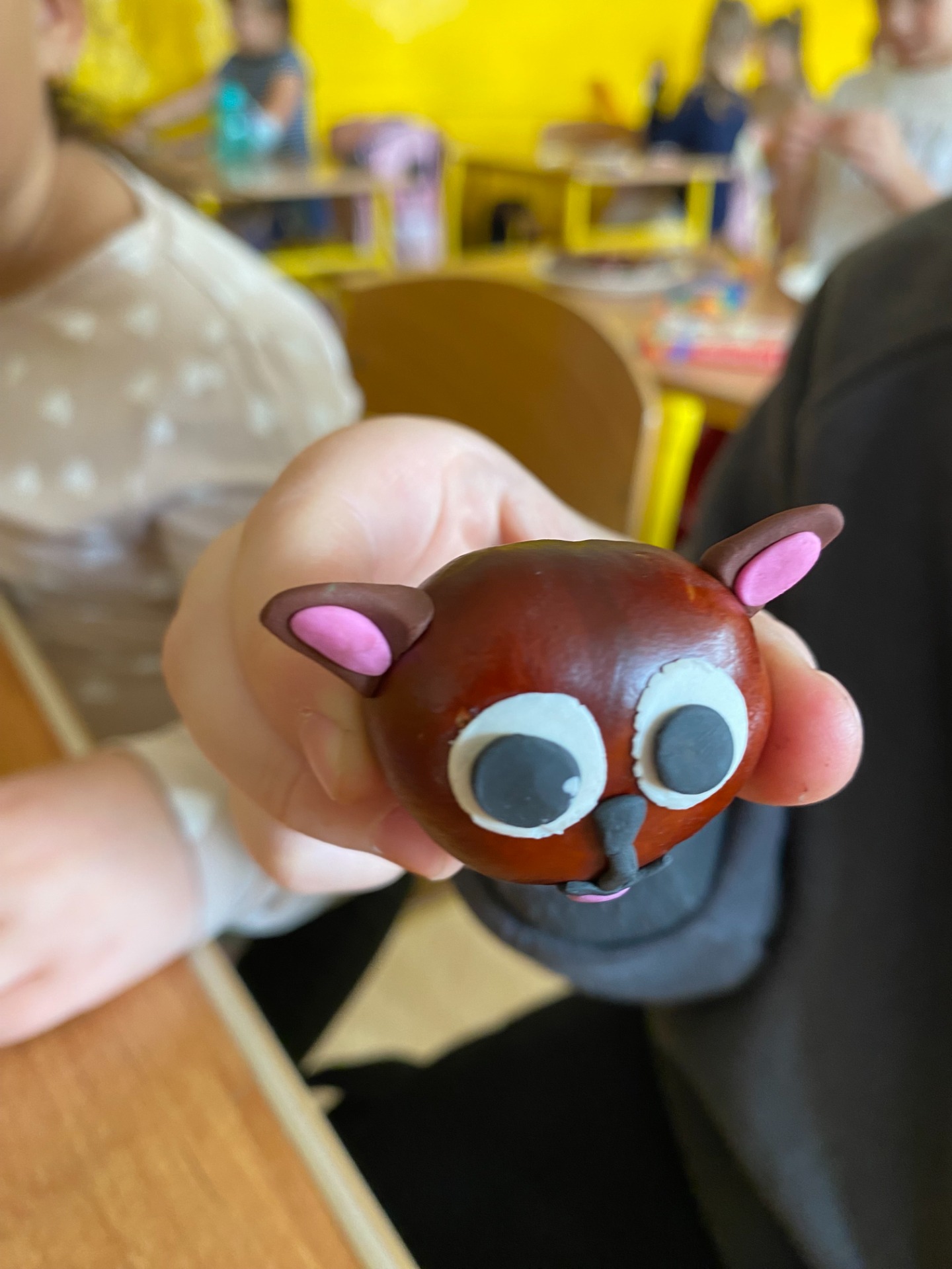 🌰wykonaliśmy zwierzątka z kasztanów i plasteliny.