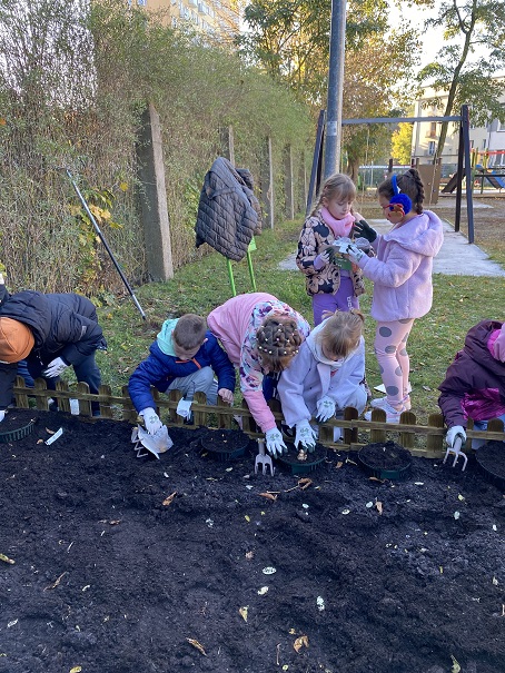 Sadziliśmy cebule tulipanów, hiacyntów, narcyzów, a nawet ozdobny czosnek. Na wiosnę ogród zachwyci nas pięknymi kolorami i odcieniami kwiatów🌷🪻🌺