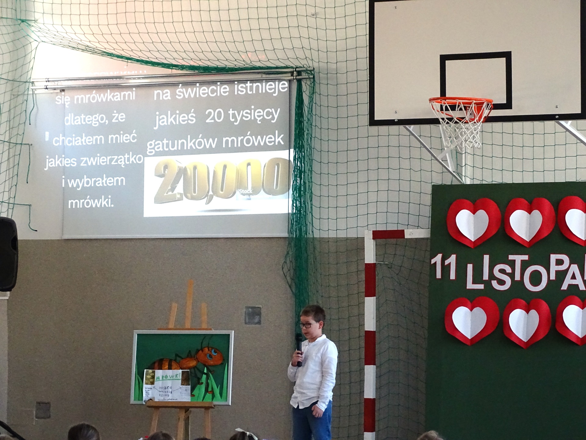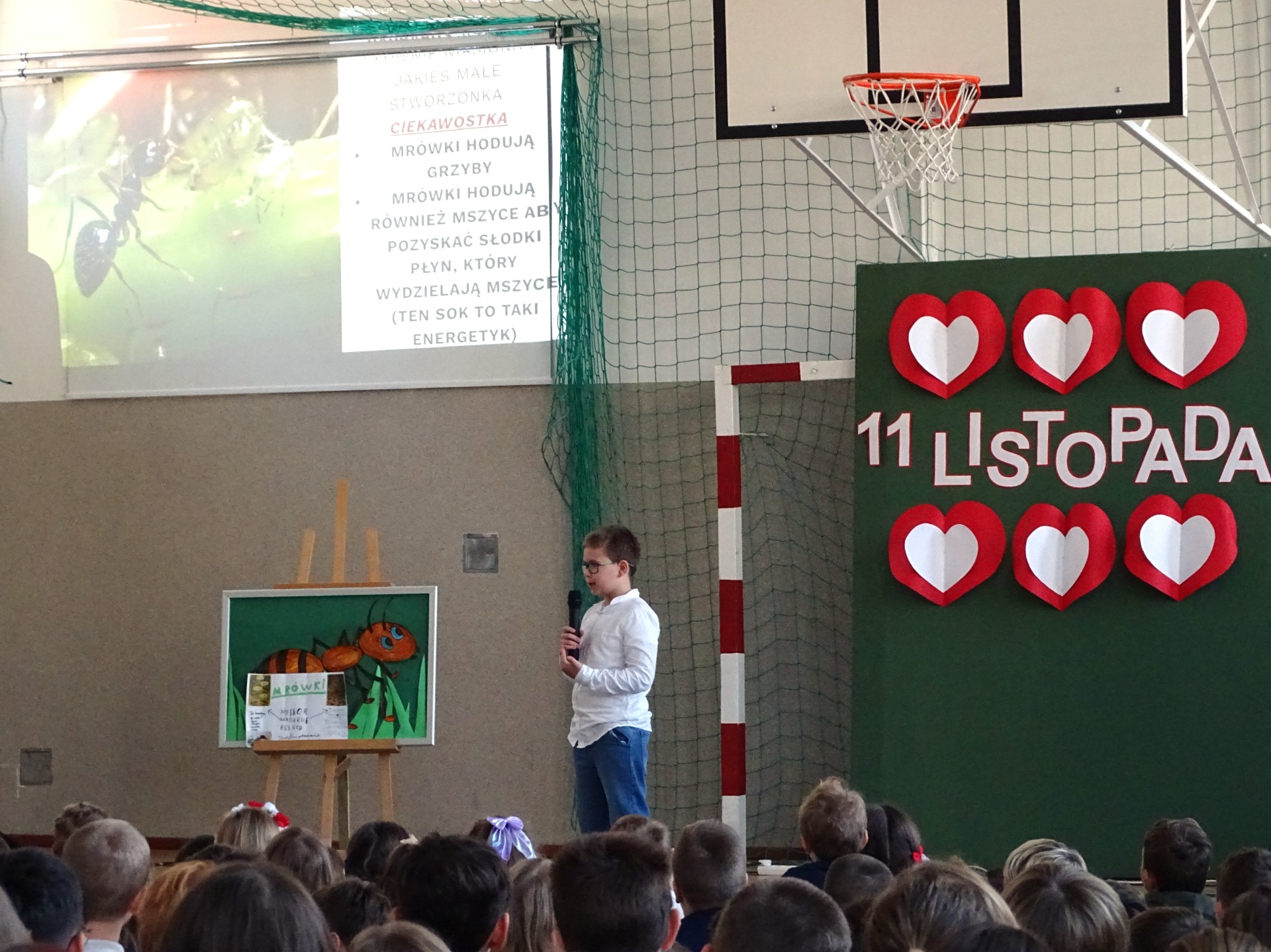 🐜🐜🐜 Następnie głos oddano Nikodemowi z kl. 5, który podzielił się ze społecznością szkolną swoim hobby, jakim jest hodowla jednego z gatunków mrówek. To było bardzo interesujące spotkanie.