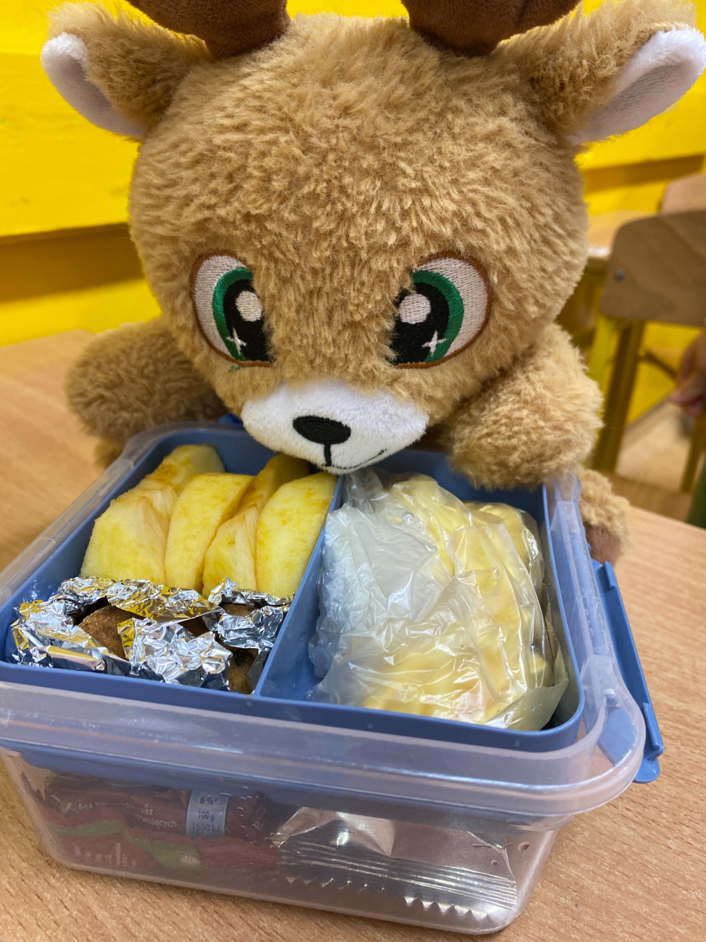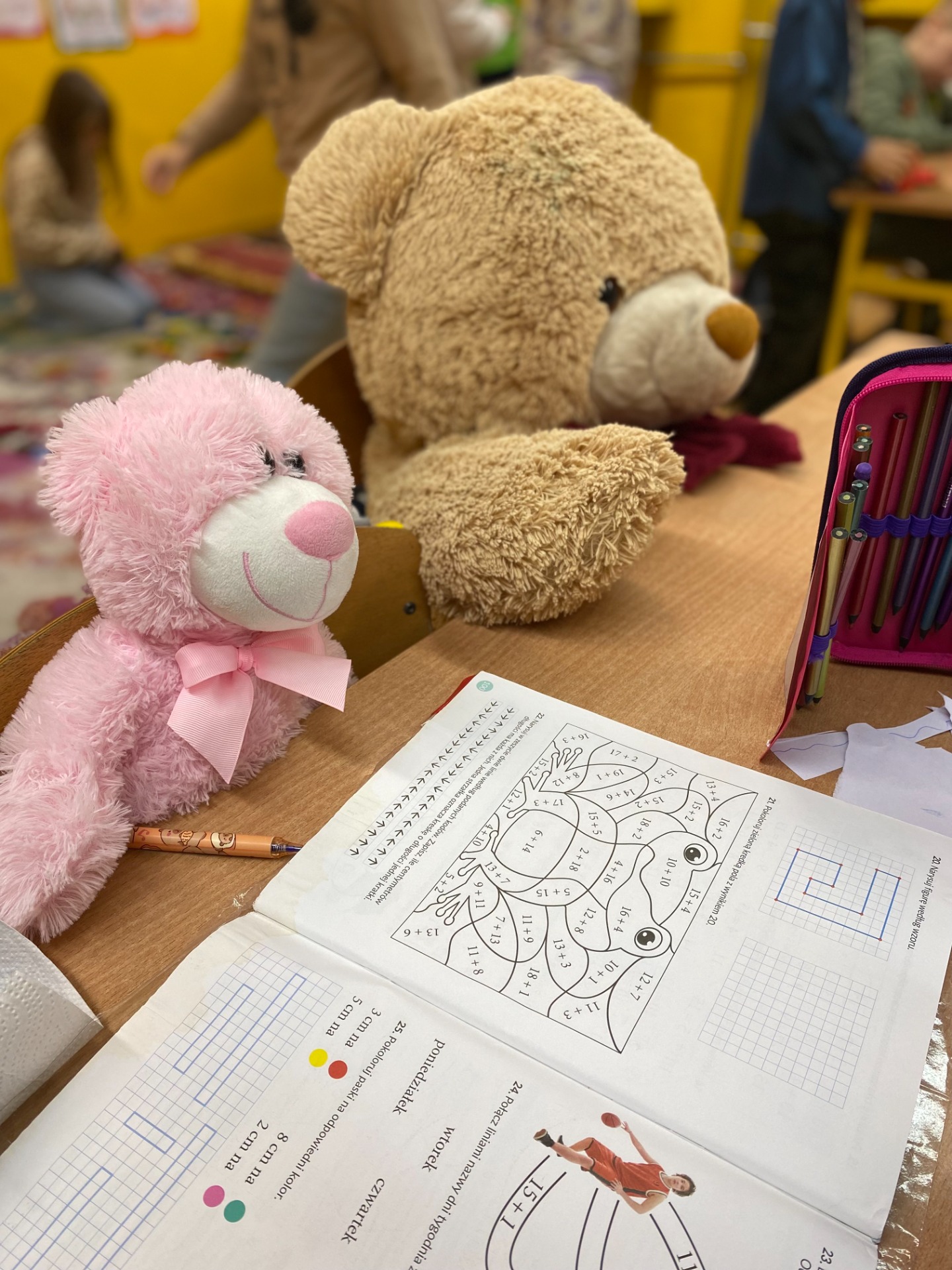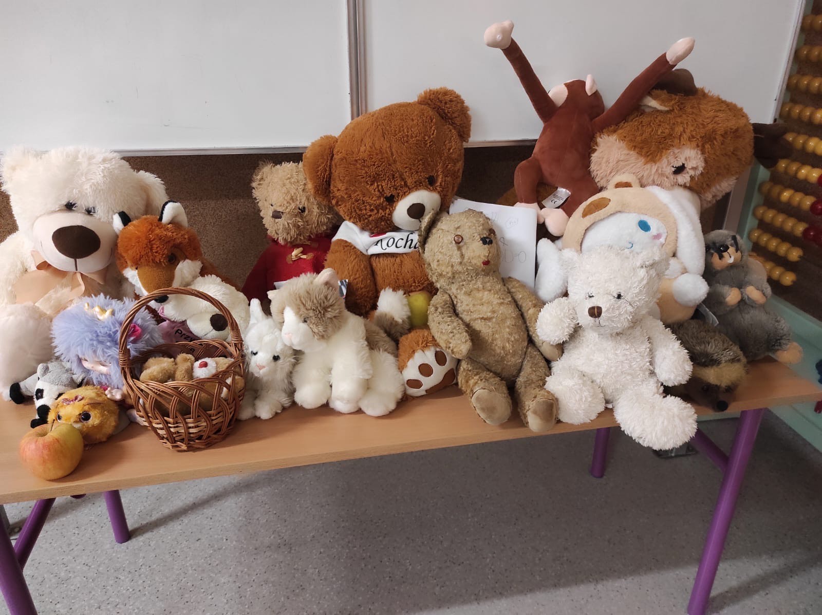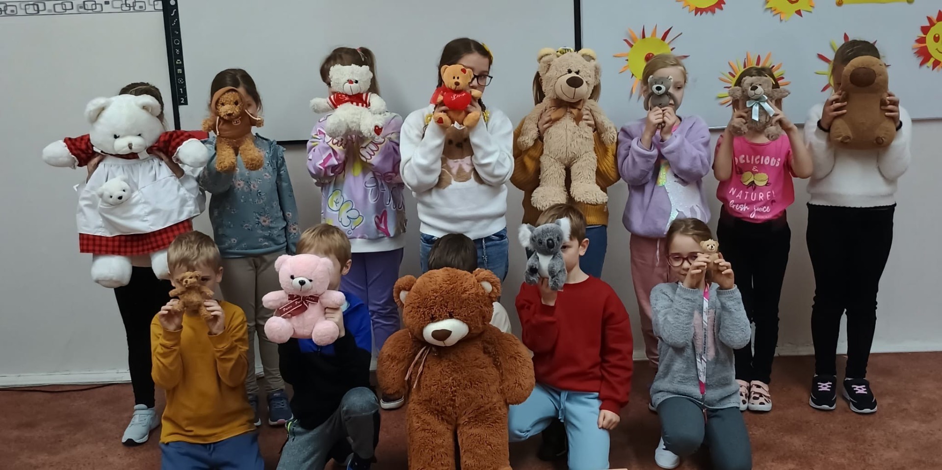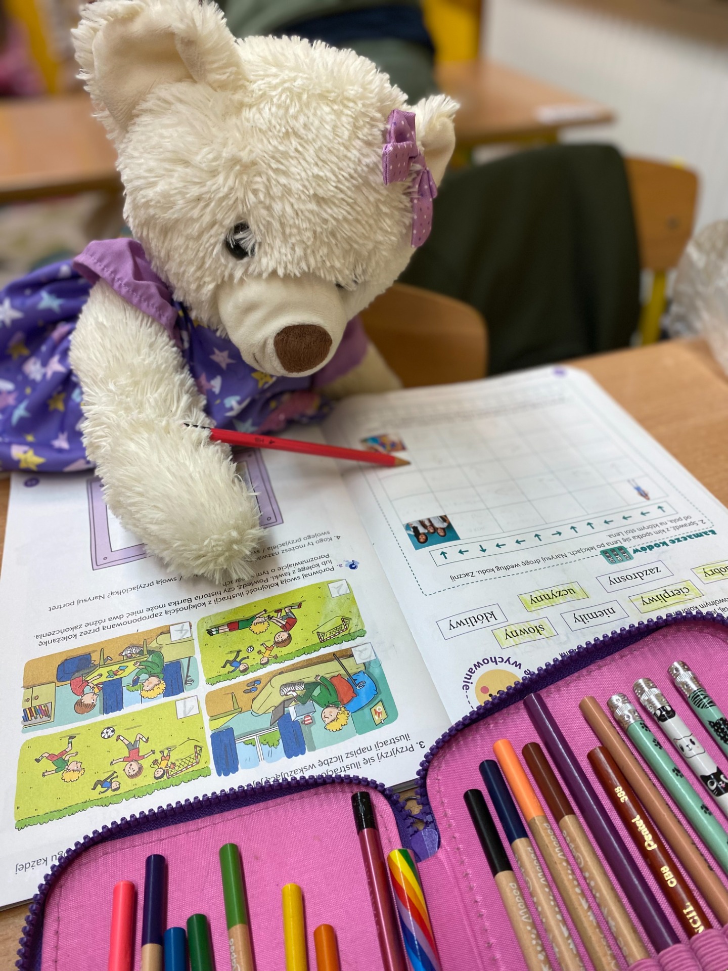 Tego dnia w szkole zaroiło się od pluszowych zabawek, wiele z nich ostro zabrało się z dziećmi do pracy. Misie pisały, liczyły, czytały jak na wzorowych uczniów przystało.