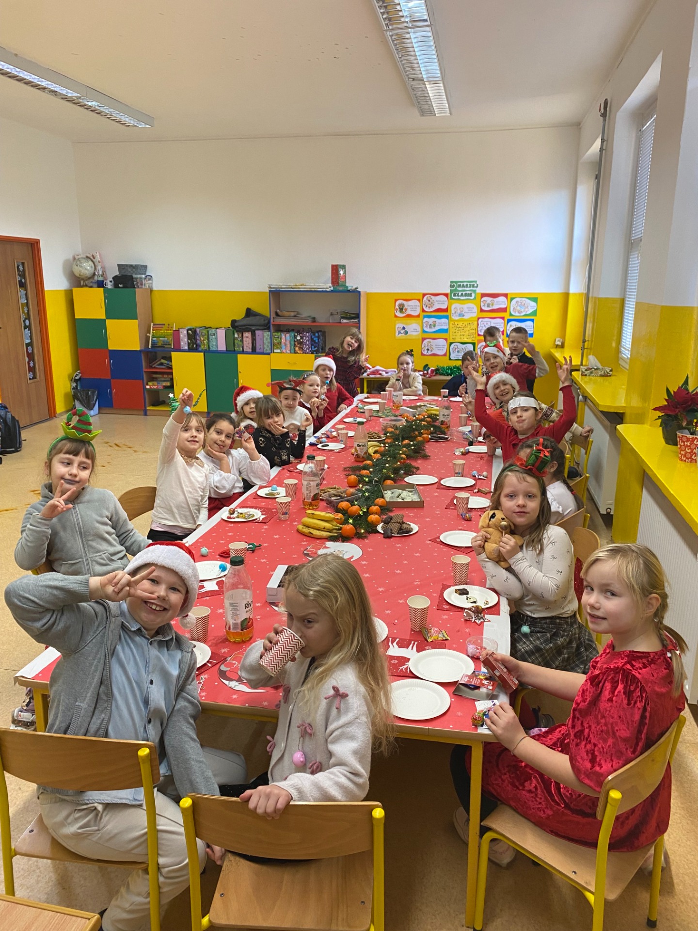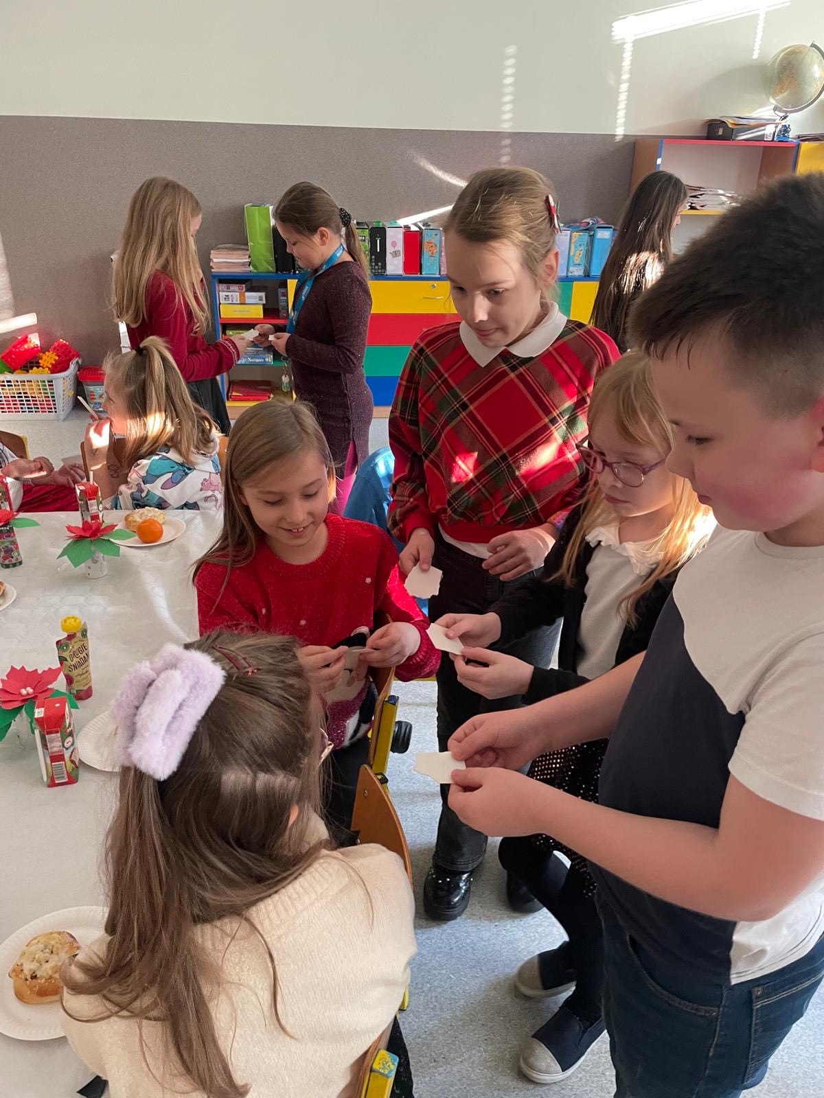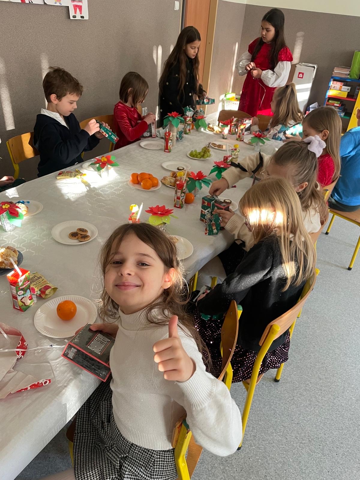 Zanim rozeszli艣my si臋 do dom贸w na przerw臋 艣wi膮teczn膮 uczniowie klas 1-3 wraz z nauczycielami zasiedli do wsp贸lnych wigilii.