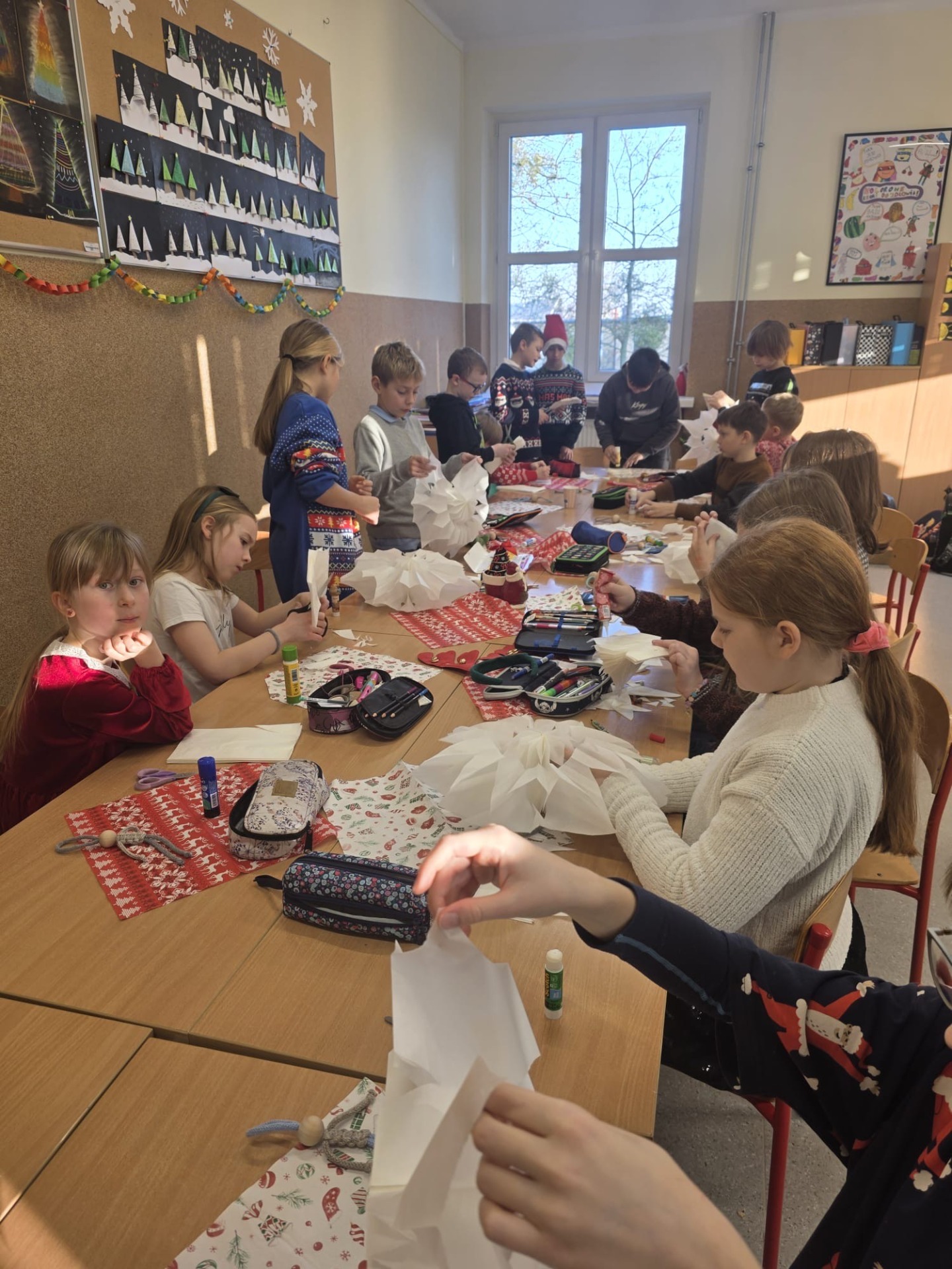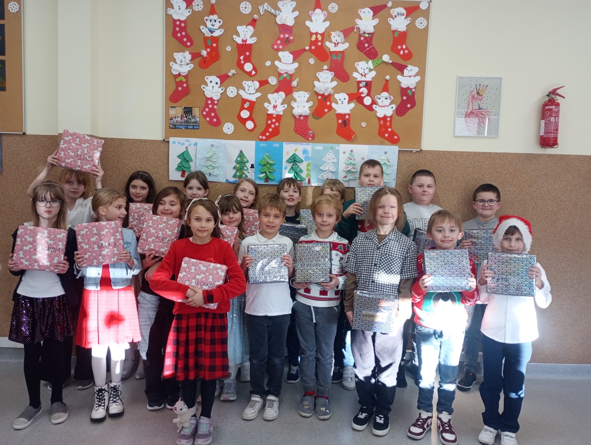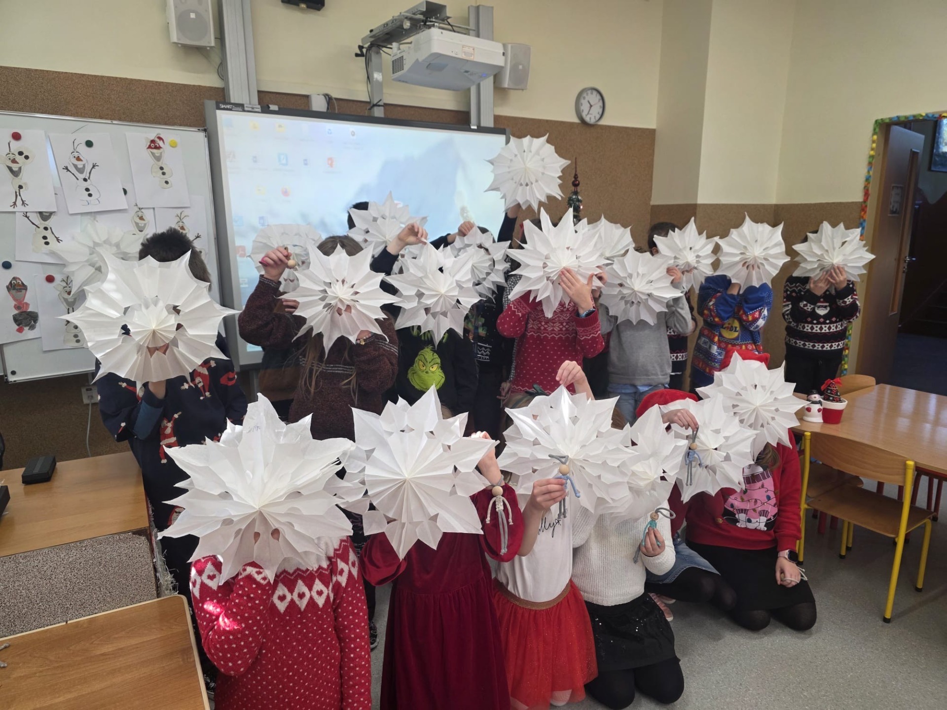 Zanim rozeszli艣my si臋 do dom贸w na przerw臋 艣wi膮teczn膮 uczniowie klas 1-3 wraz z nauczycielami zasiedli do wsp贸lnych wigilii.