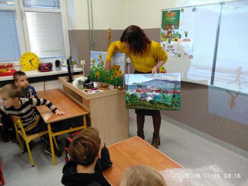 Ludzie z pasją - spotkanie uczniów klasy 3 a z p. Małgosią: matematykiem, informatykiem, pasjonatką malarstwa.