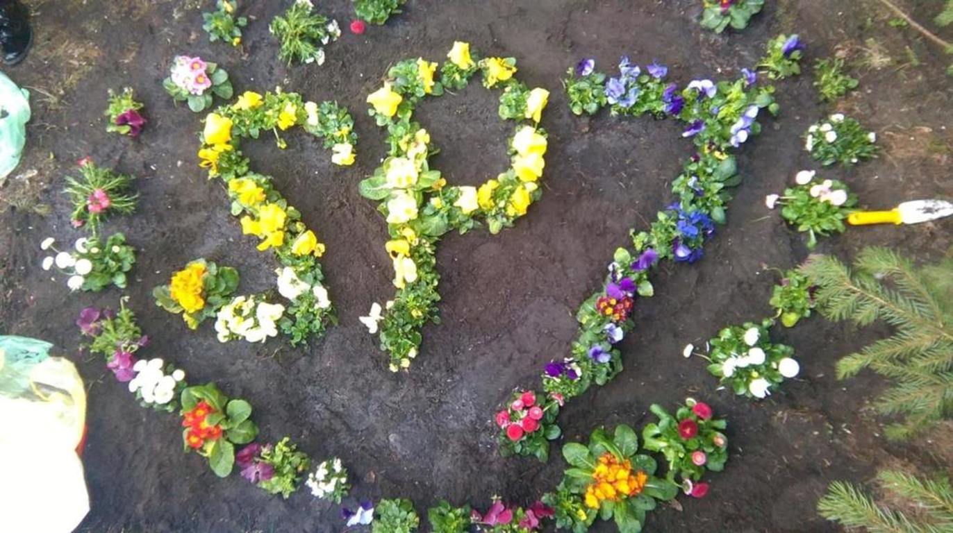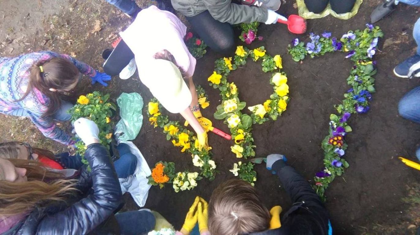 Klasa 6a sadzi kwiaty na terenie szkoły